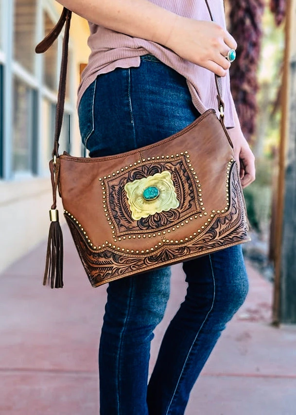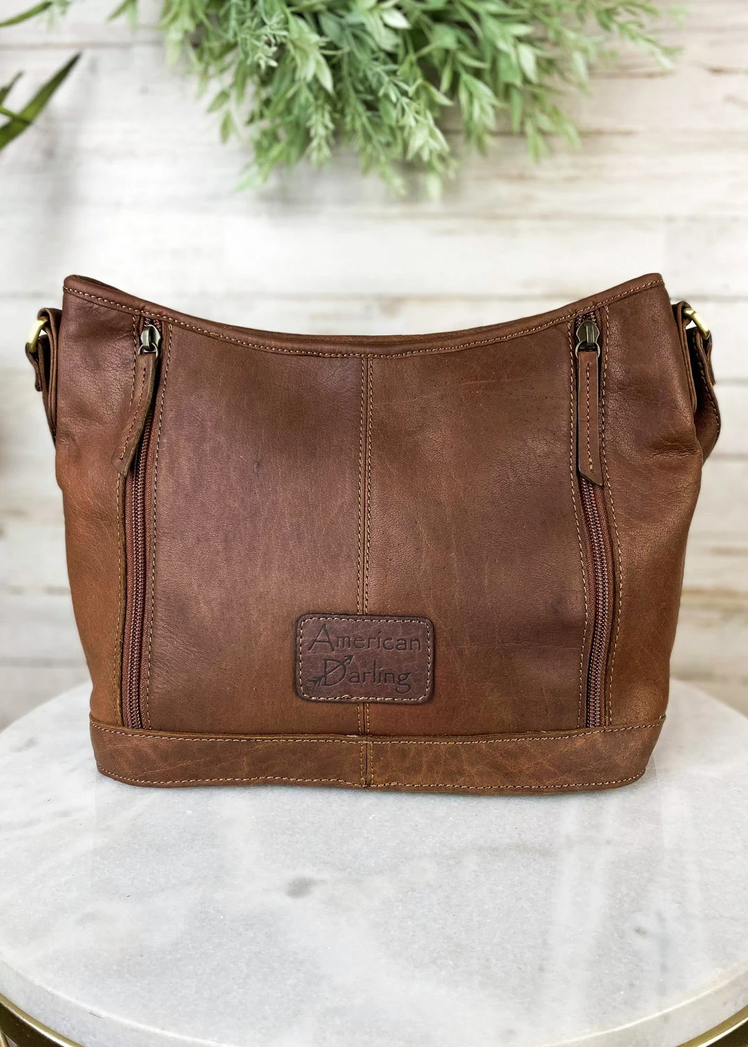 - Elevate your style with the American Darling Brown Vintage Gold Conceal Carry Crossbody Bag. Its timeless design and practical functionality make it a must-have accessory.