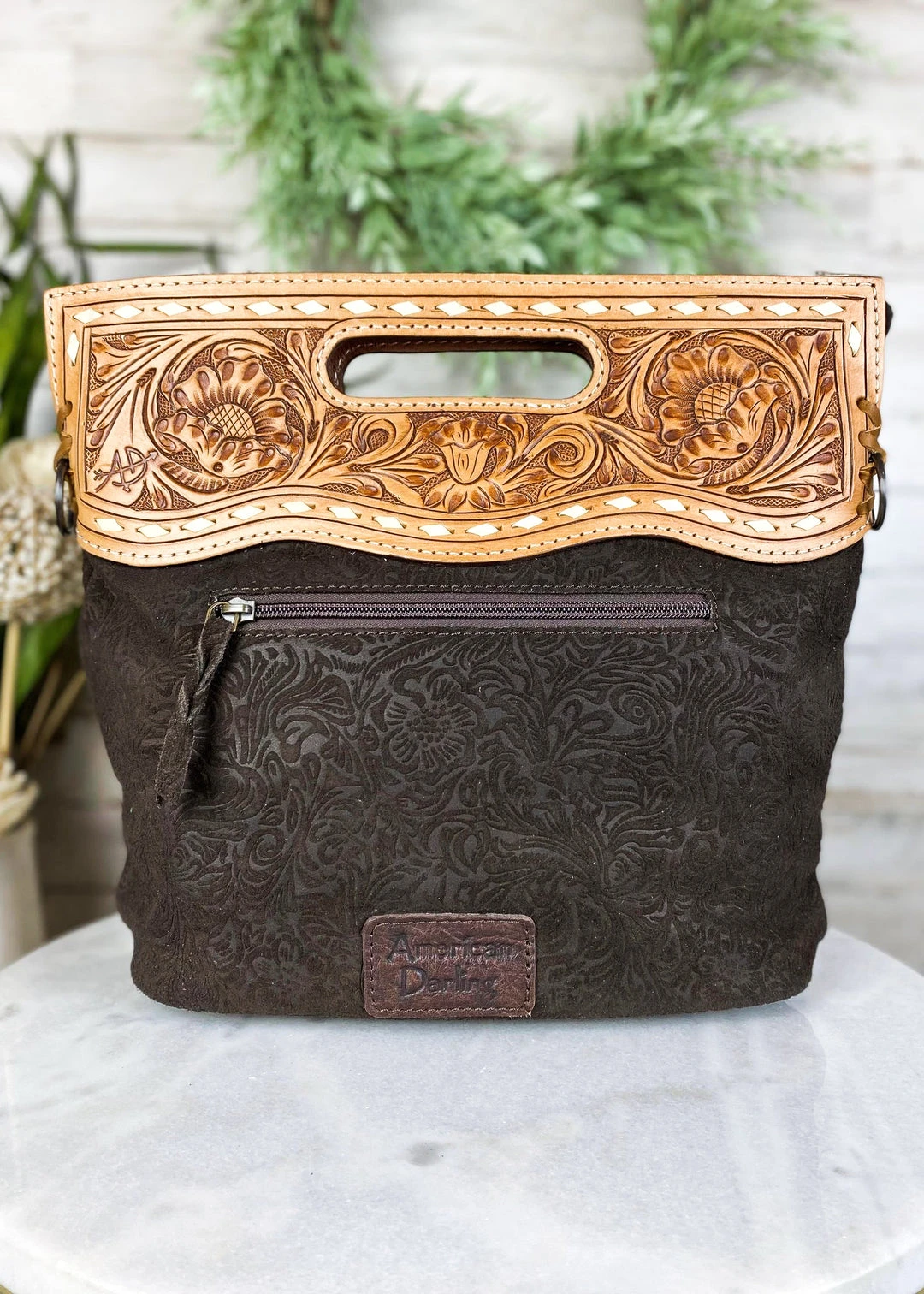 - Experience timeless elegance with the American Darling Chocolate Brown Embossed Tooled Crossbody Handbag. Its classic design and premium craftsmanship make it a must-have accessory.