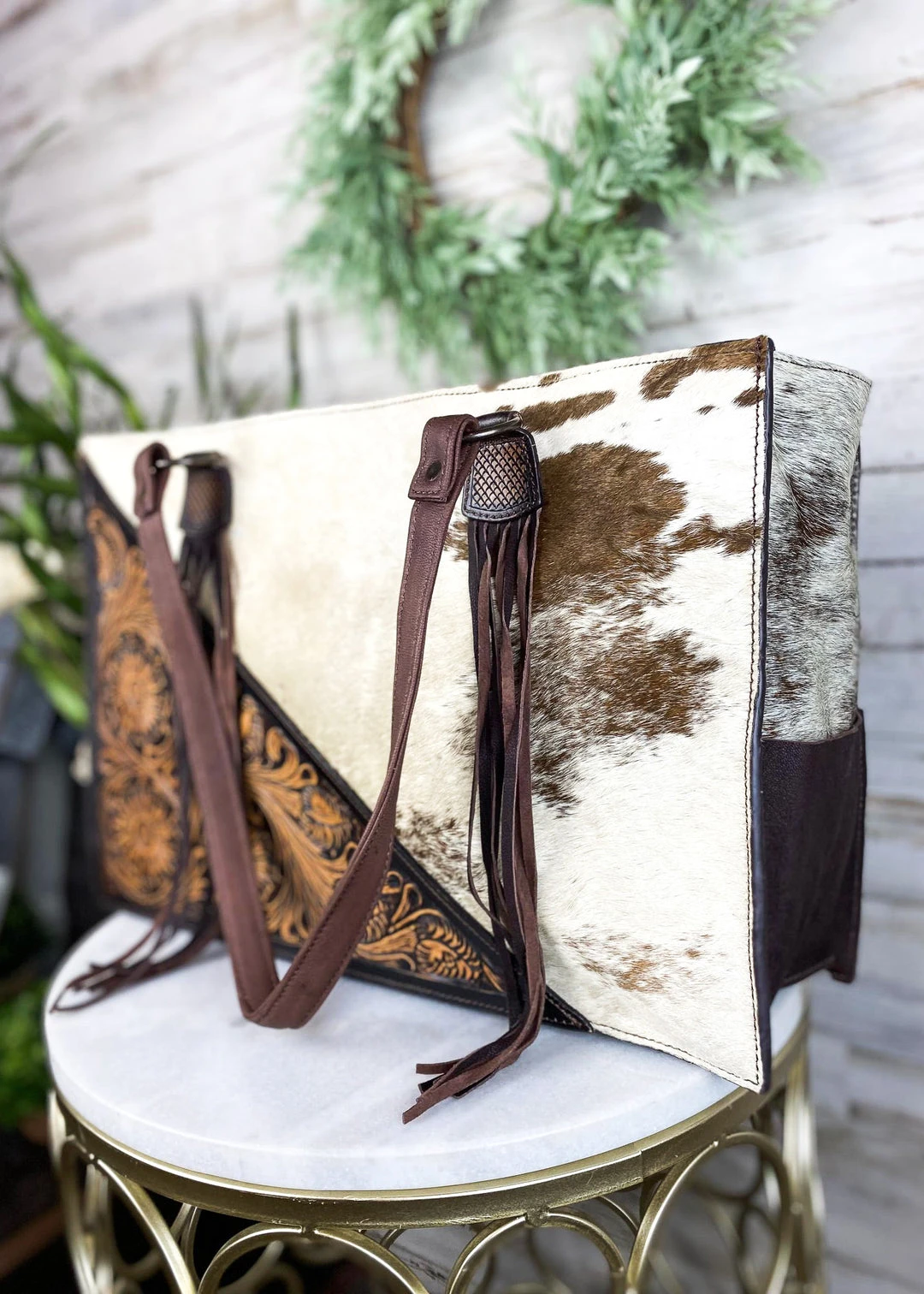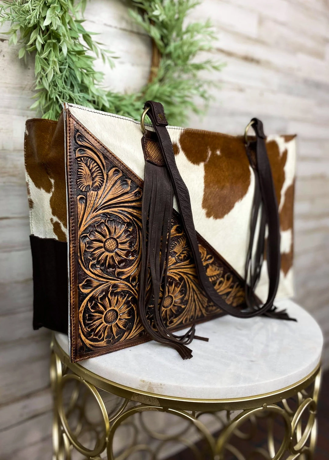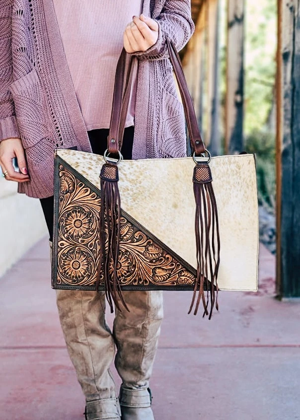 - The American Darling Concealed Carry Cowhide Leather Tassel Handbag combines style and functionality. Made from high-quality cowhide leather, this handbag is durable and elegant.