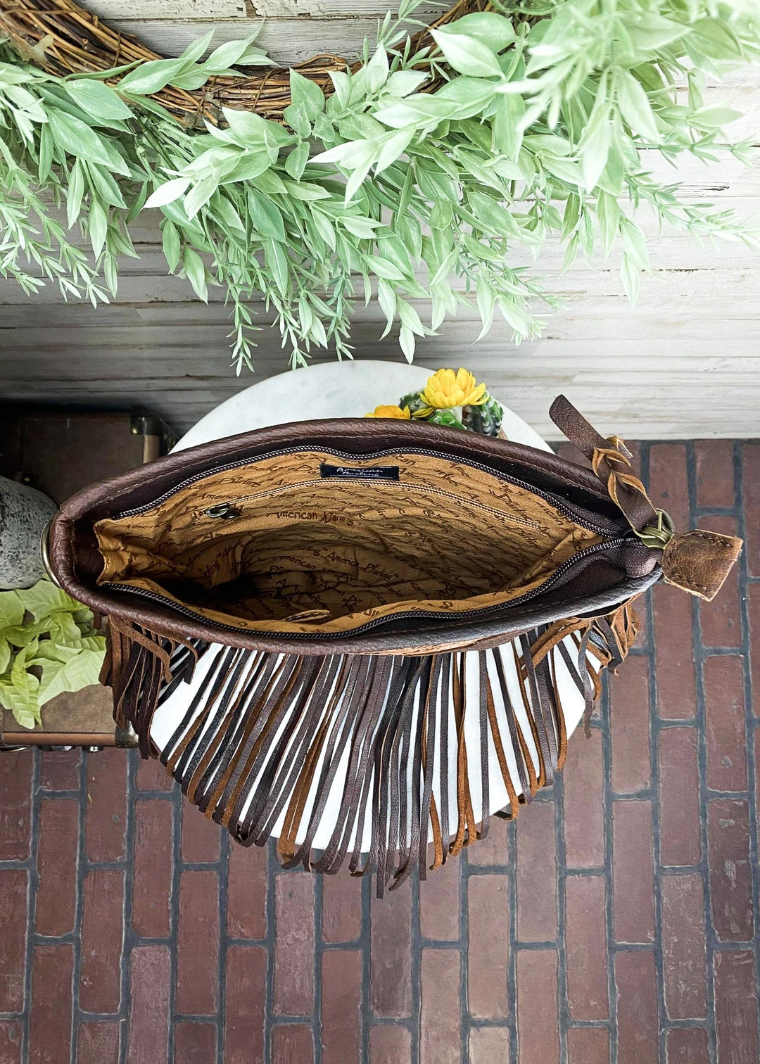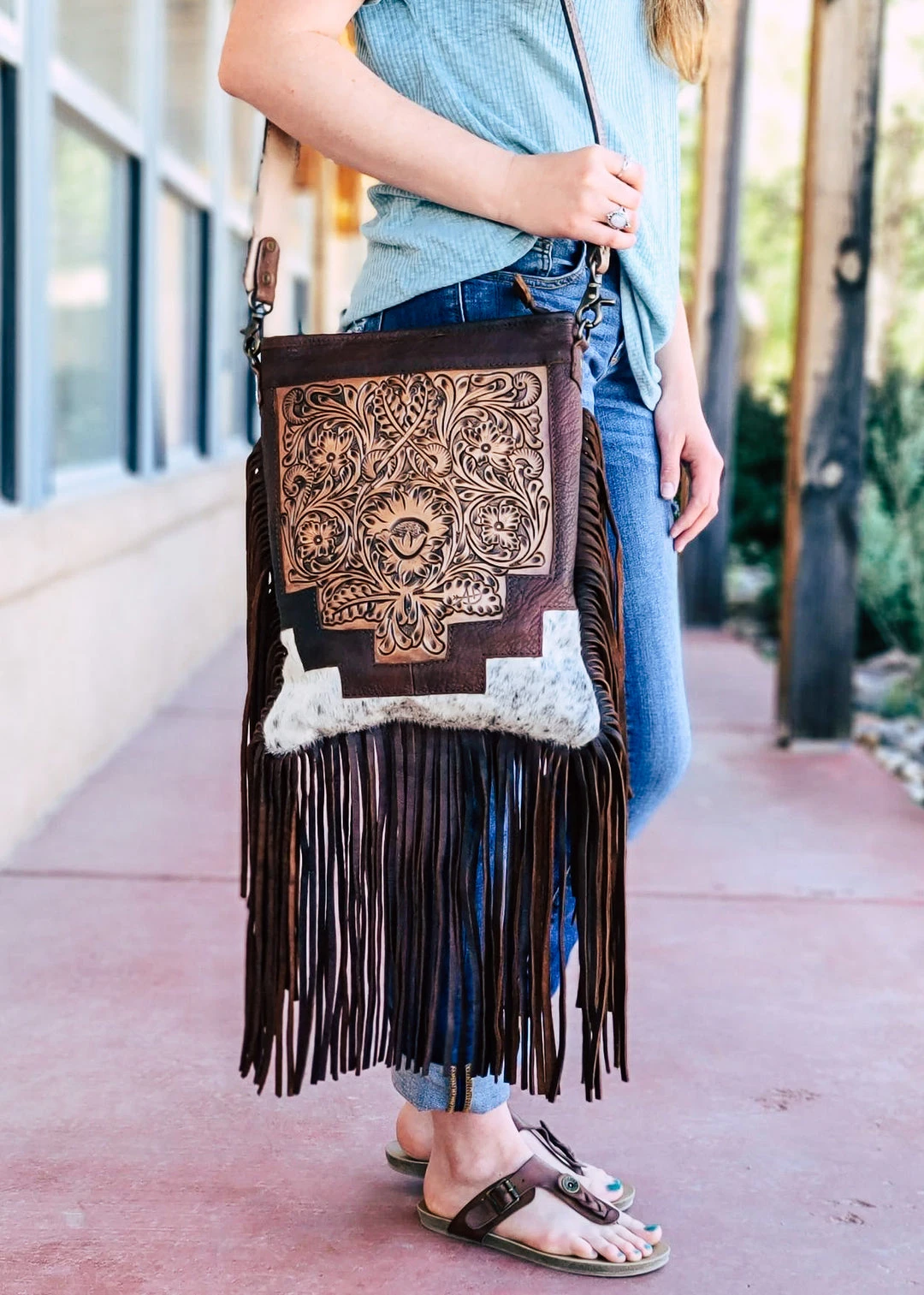 - Elevate your style with the American Darling Concealed Carry Floral Tooled Fringe Cowhide Handbag. This crossbody bag combines elegance and practicality, making it perfect for any occasion.