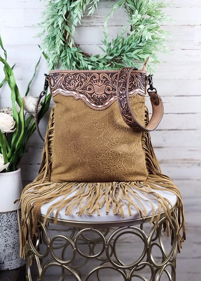 - Elevate your style with the American Darling Concealed Carry Georgia Brown Fringe Handbag. Designed for both fashion and functionality, this handbag is perfect for everyday use.