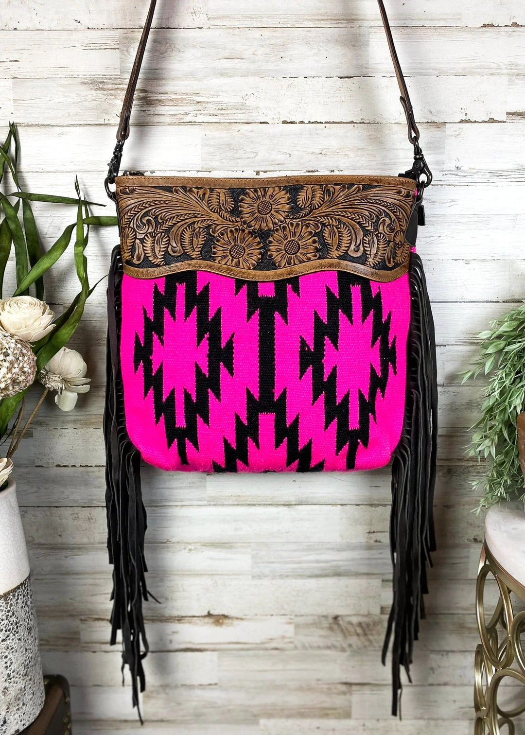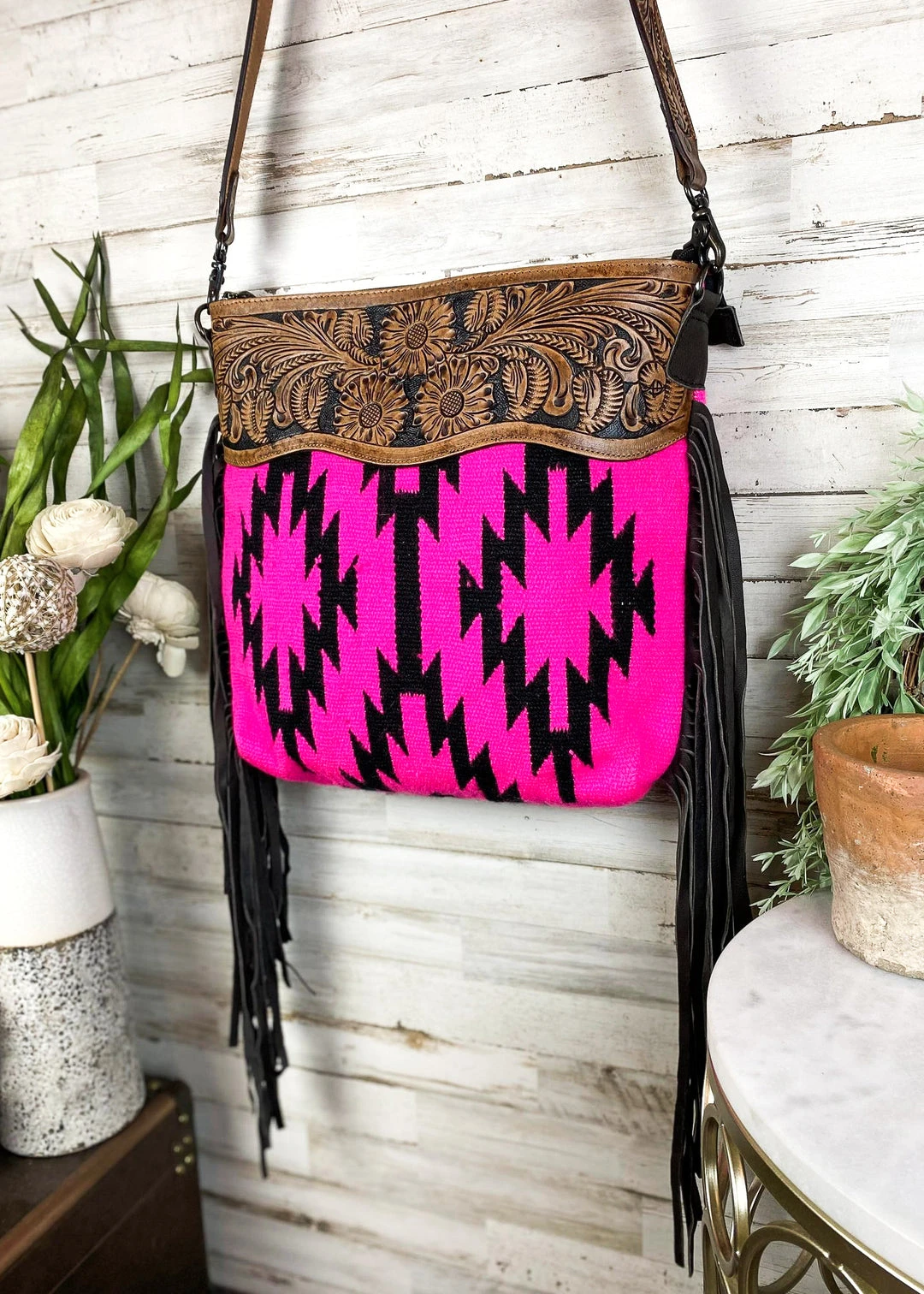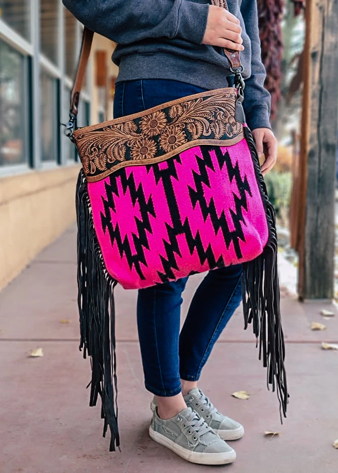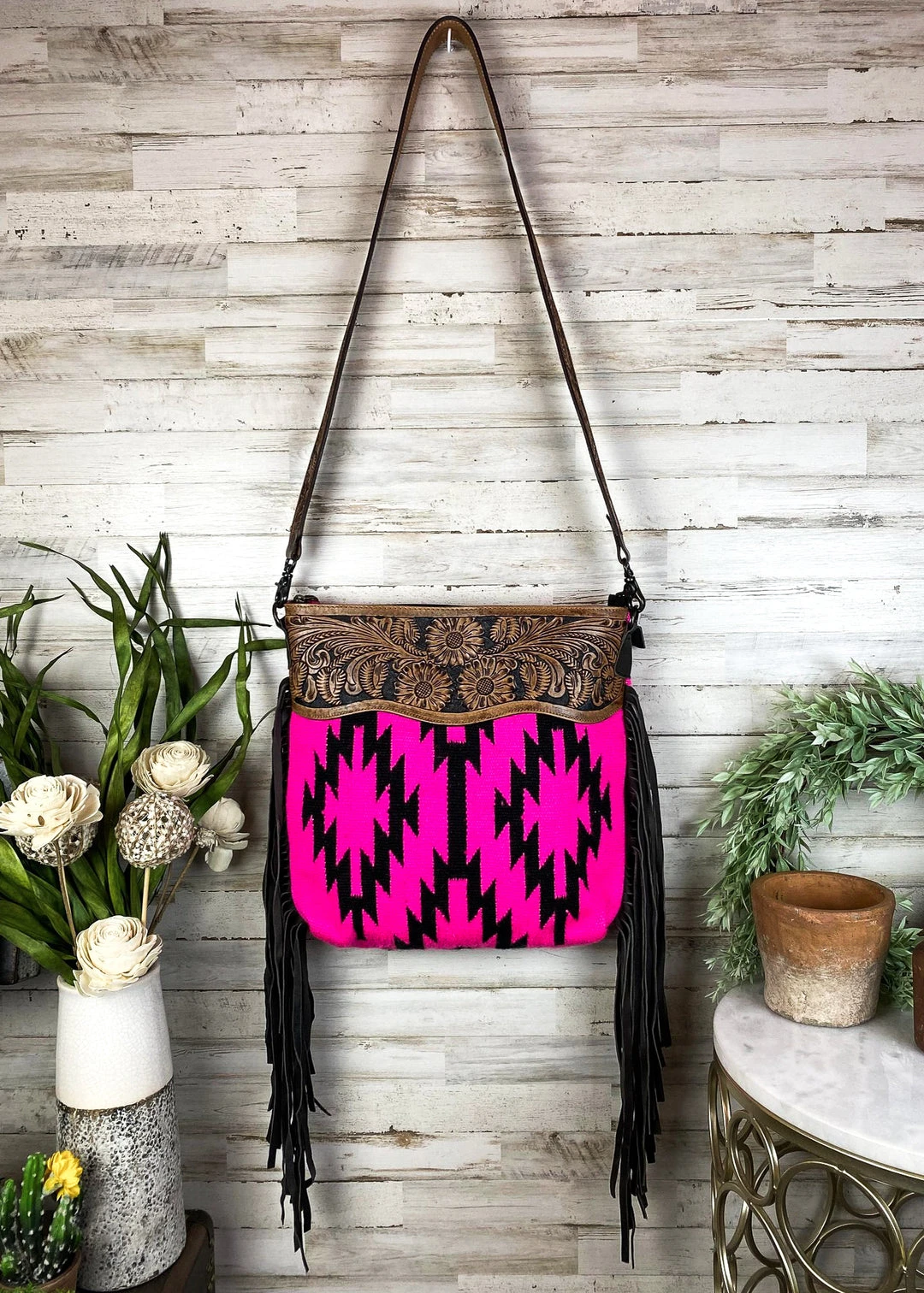 - Stay fashionable and secure with the American Darling Hot Pink Aztec Fringe Concealed Carry Crossbody Handbag. Its unique design combines style and functionality seamlessly.