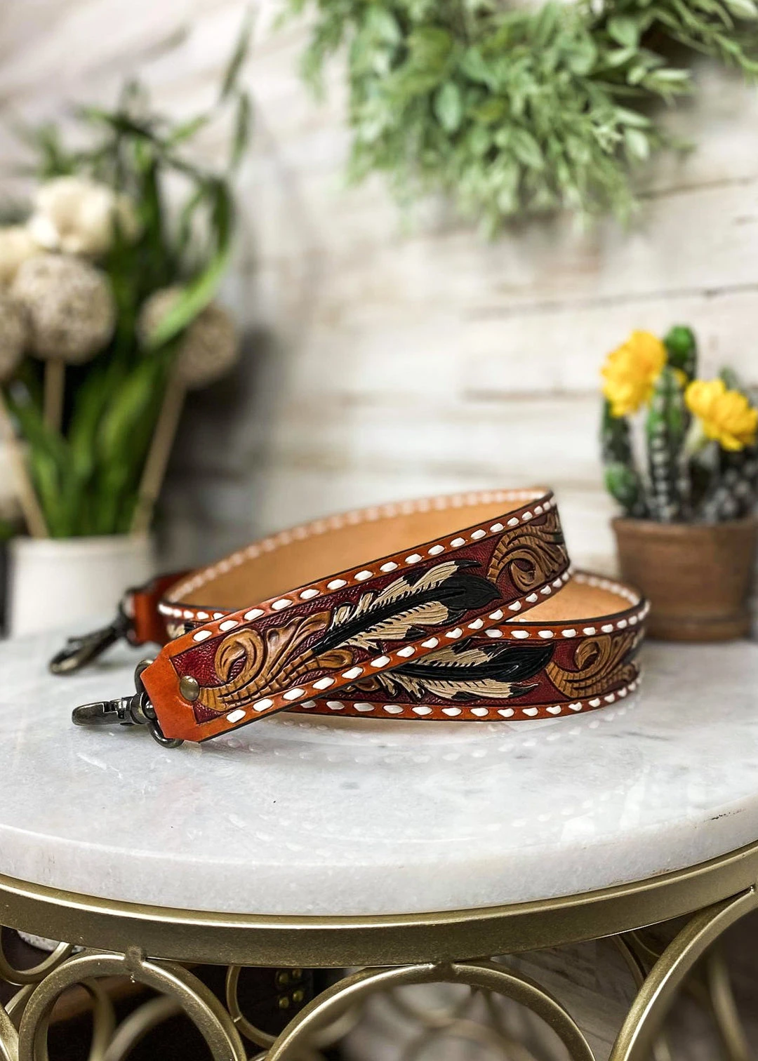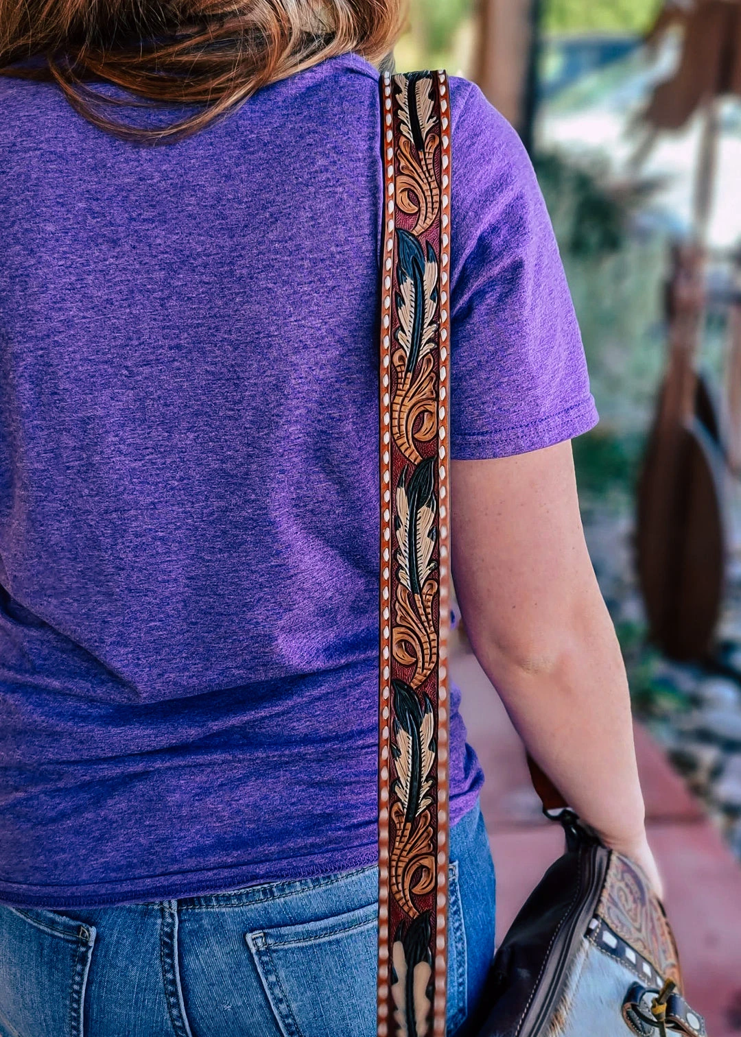 - Elevate your handbag game with the American Darling Jazzy Feather Purse Strap. This chic accessory adds a touch of glamour to any purse.