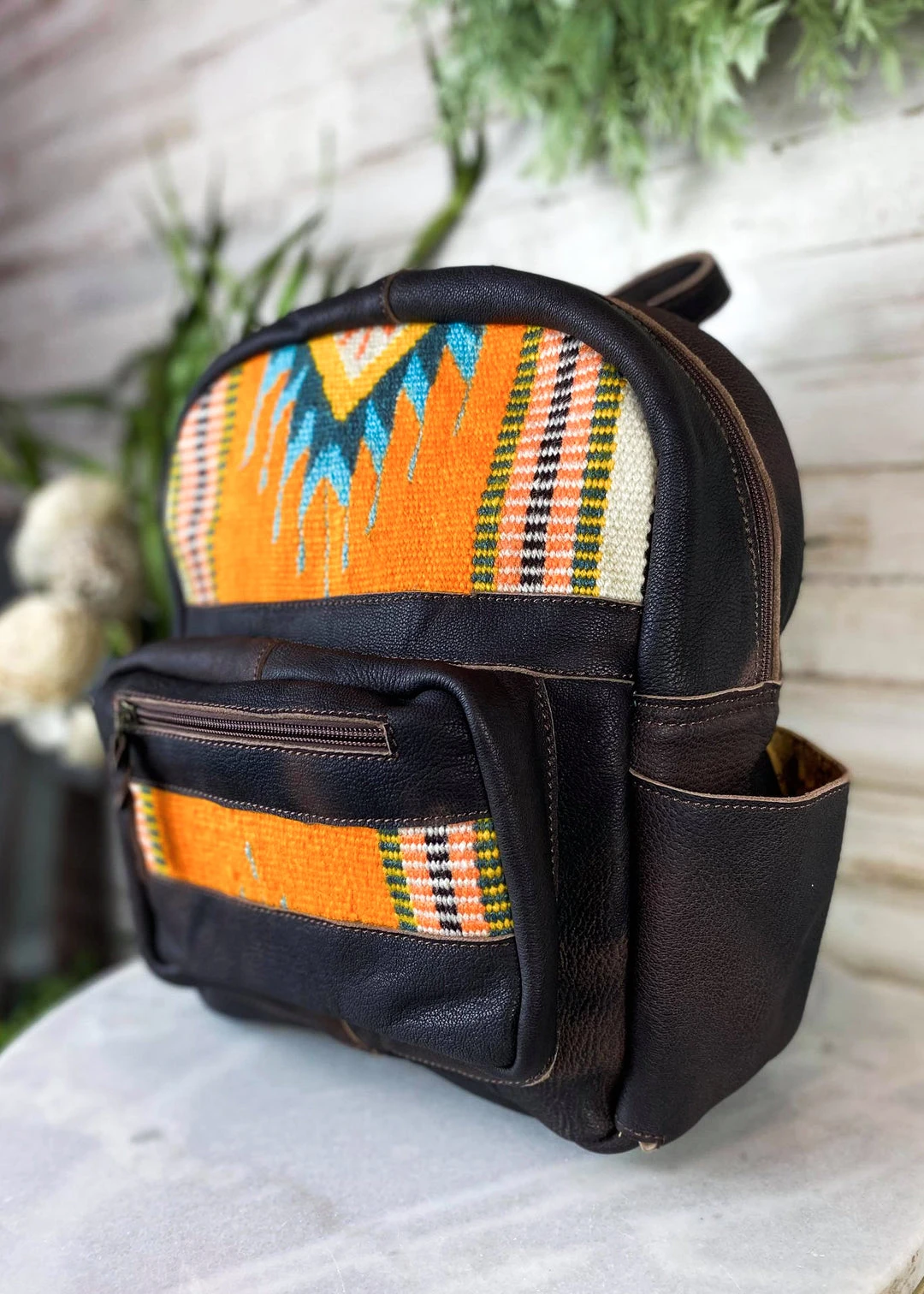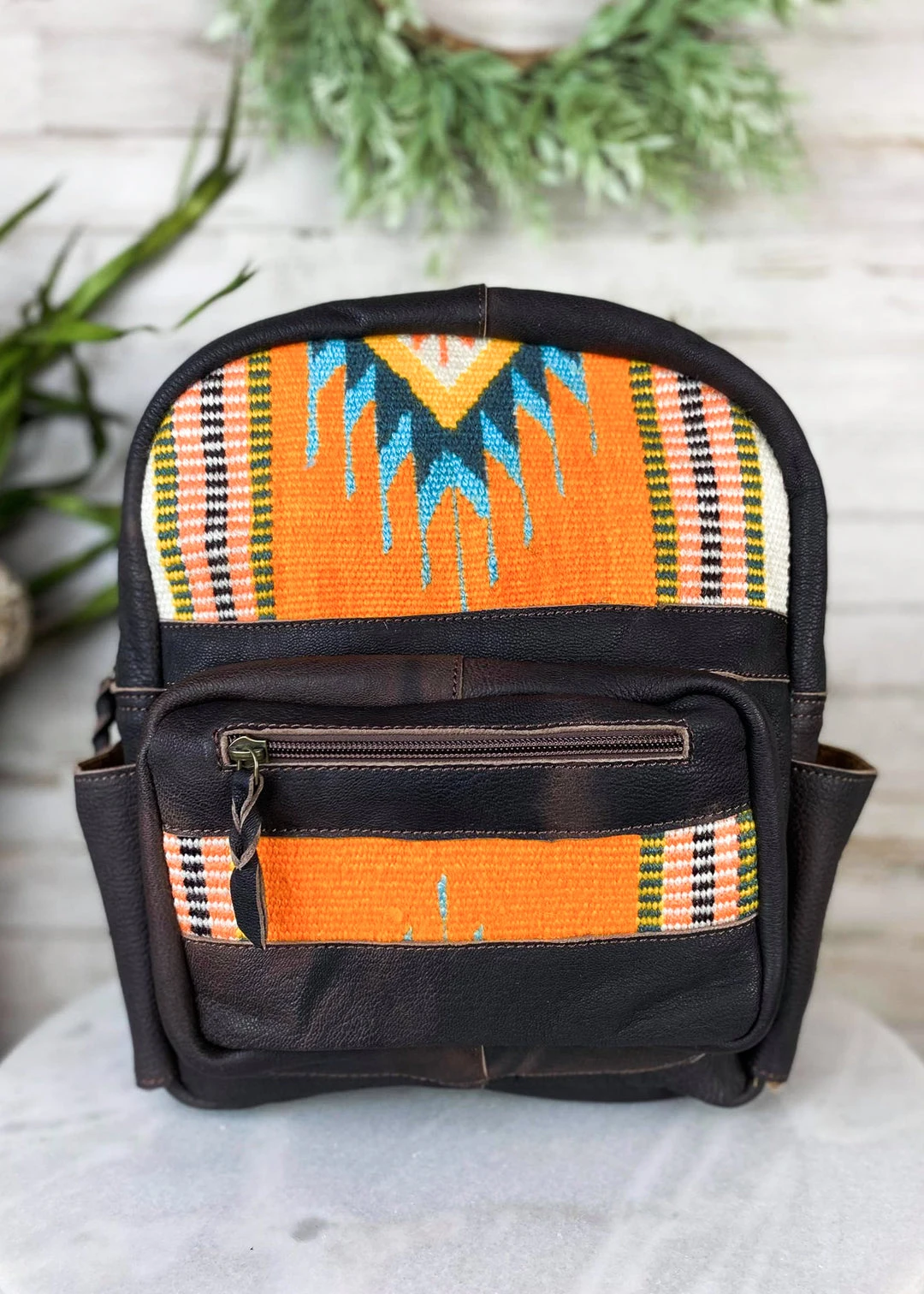 - The American Darling Orange Aztec Traveler Backpack combines vibrant Aztec patterns with a sleek design, making it a fashionable and functional accessory for any occasion.