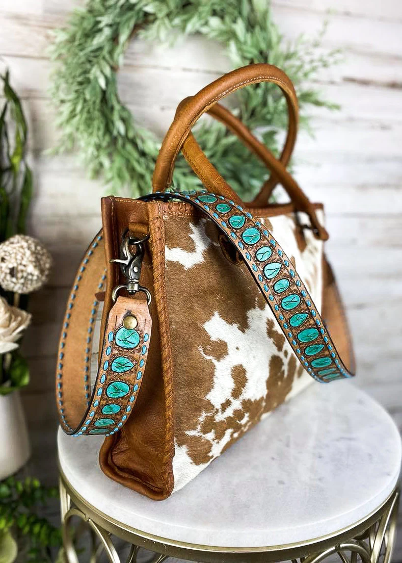 - Adorned with beautiful painted turquoise stones, this purse strap adds a pop of color and a touch of elegance to any handbag.