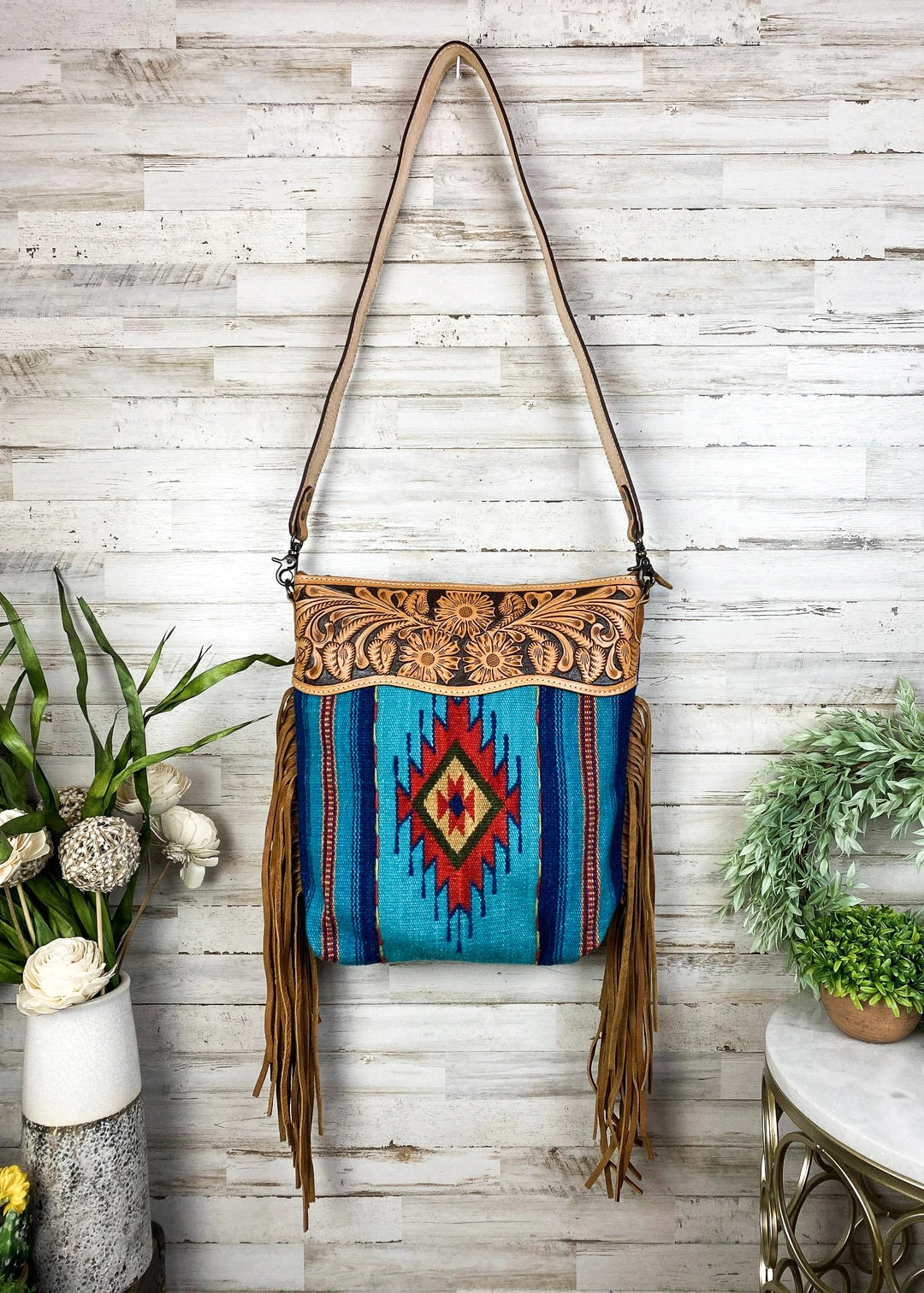 - Add a touch of Southwestern charm to your wardrobe with the American Darling Santa Fe Blue Saddle Blanket Fringe Crossbody Handbag. Order now and experience the perfect blend of style and practicality.