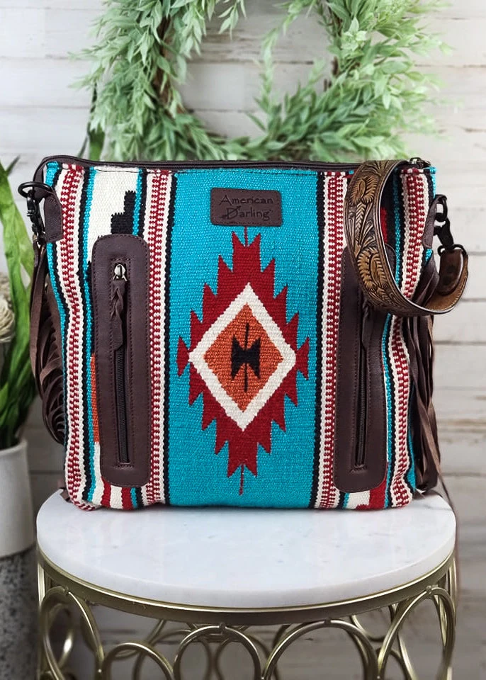 - Free shipping on all orders! Enjoy a hassle-free shopping experience with our secure payment options and fast delivery. Shop the American Darling Teal Genevieve Aztec Fringe Concealed Carry Handbag today!