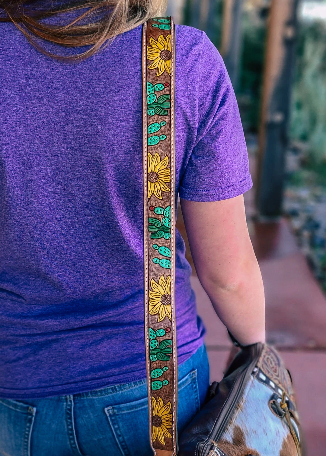 - Add a touch of Southwestern charm to your handbag with the American Darling Tooled Sunflower & Cactus Purse Strap. Featuring intricate tooled designs of sunflowers and cacti, this strap is both stylish and functional.