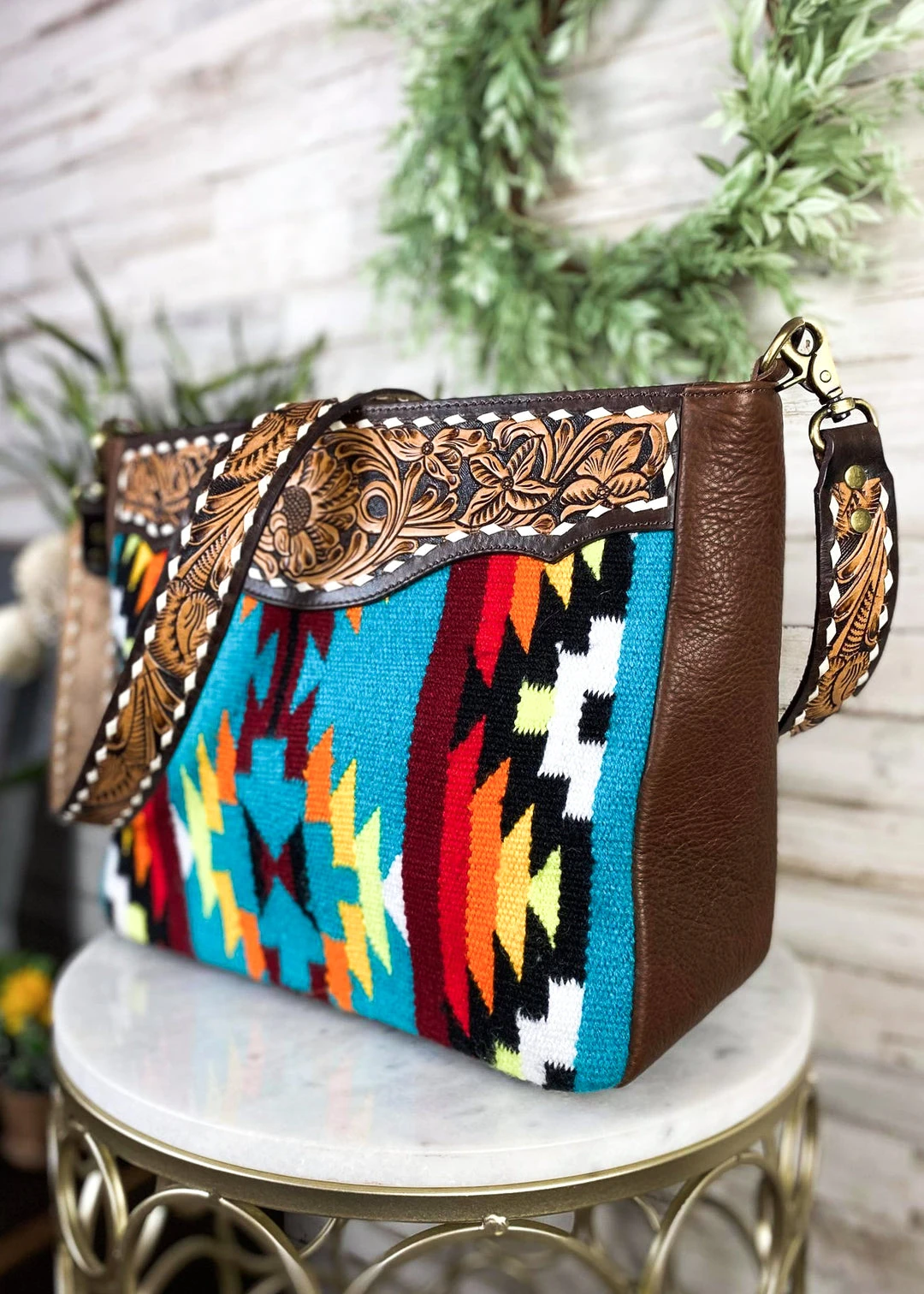- We offer secure payment options and a hassle-free return policy. Shop with confidence and experience the perfect blend of fashion and functionality with the American Darling Turquoise Multi Color Aztec Concealed Carry Handbag.