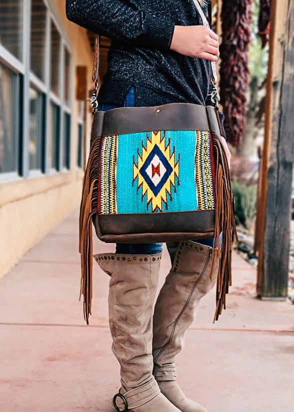 - Elevate your style with the American Darling Turquoise Willow Aztec Crossbody Handbag, featuring a vibrant turquoise design and spacious compartments.