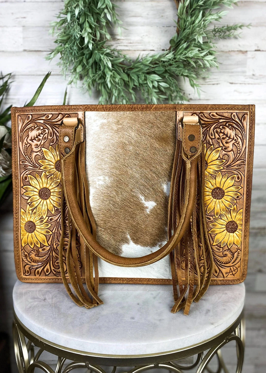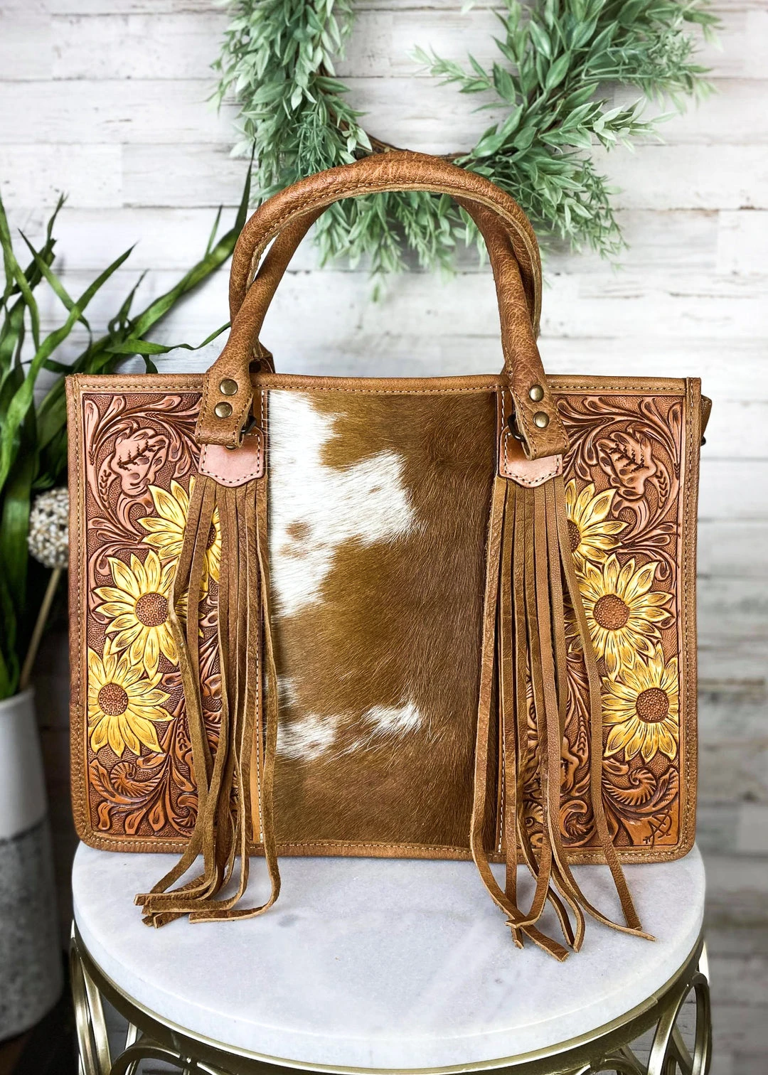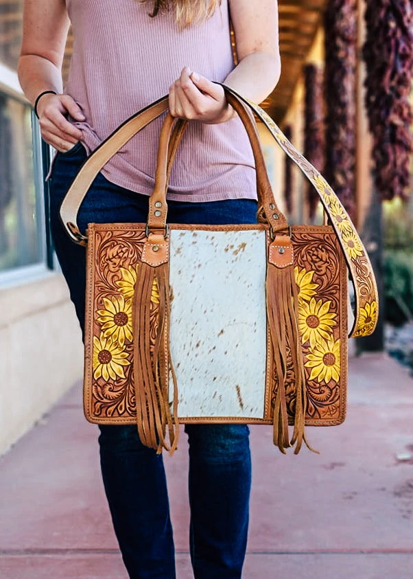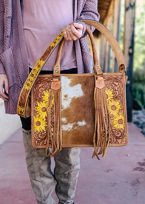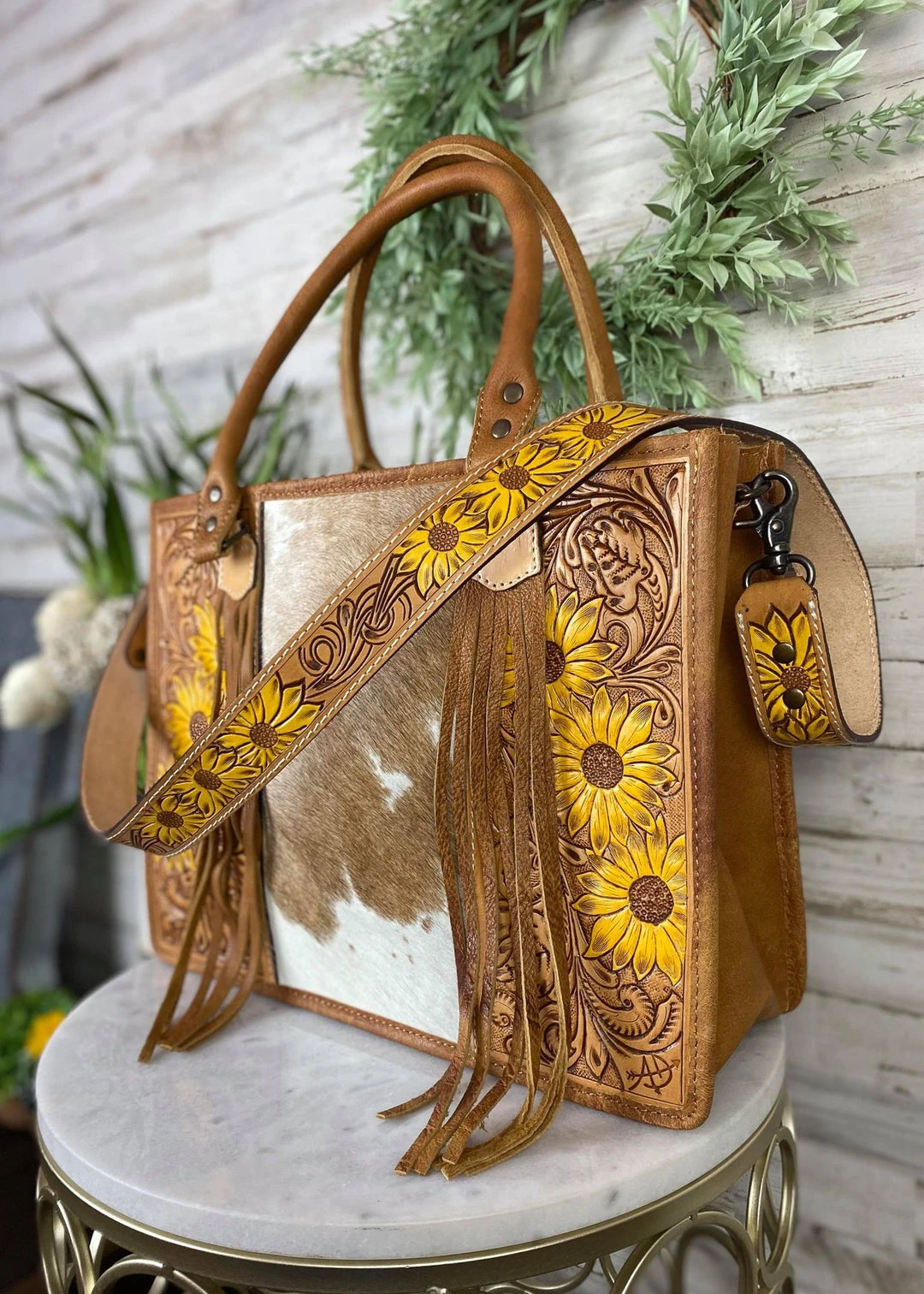 - Available now with secure payment options and fast, reliable shipping. Add the American Darling Yellow Sunflower & Cowhide Concealed Carry Handbag to your collection today and experience the perfect blend of fashion and function.