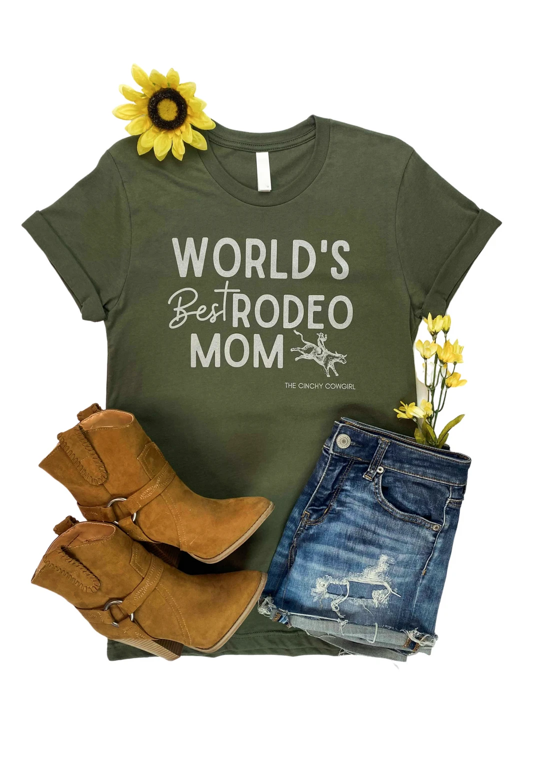 - Show off your rodeo pride with this Army Green ‘World’s Best Rodeo Mom’ Short Sleeve Tee from Cinchy Cowgirl. Perfect for rodeo events, casual outings, or as a gift for the rodeo mom in your life.
