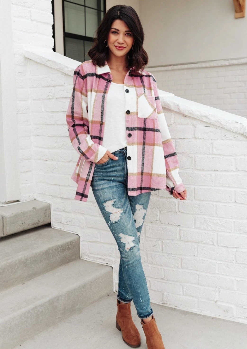 Keywords: Plaid Jacket, Plaid Shacket, Pink Jacket, Pink Top, Fall Jacket