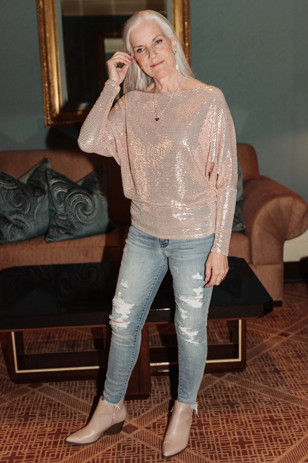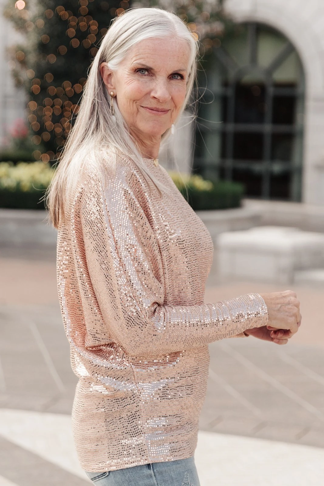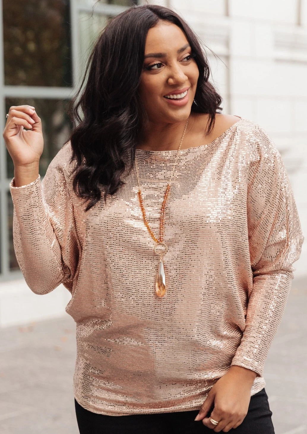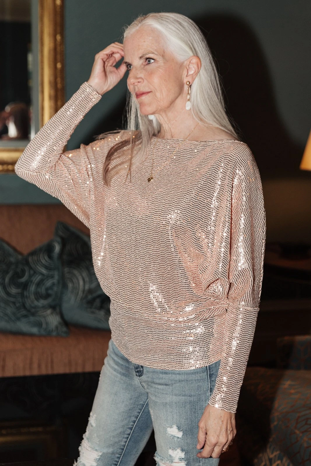 The All About The Bling Top is certainly worth all the attention you’ll be getting this holiday season! So effortless to Dress up your favorite pair of jeans or elevate an evening look! Featuring sequins that cover the entire top, dolman sleeves and a wide cut neckline. Pair it with your favorite pants and wear on or off the shoulders!