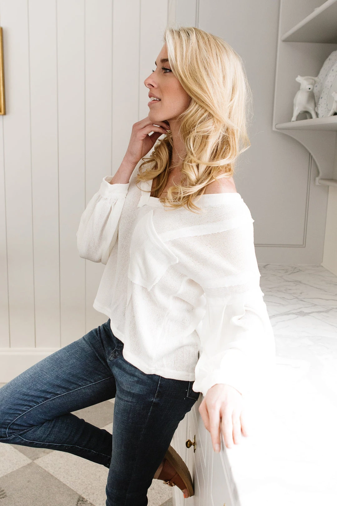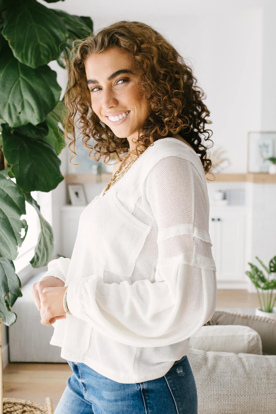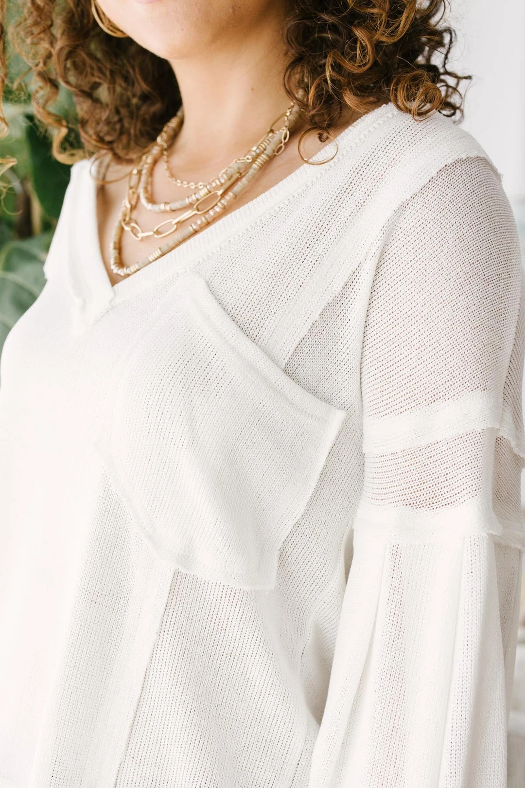 This lightweight knitted top is the perfect transition piece you have been in search of. It can be perfectly paired over your favorite bralette or swimsuit for the warmer months and makes the most gorgeous layering piece to perfect any outfit. It features raw stitching details and a deep v-neckline to flawlessly show off your favorite jewelry pieces.