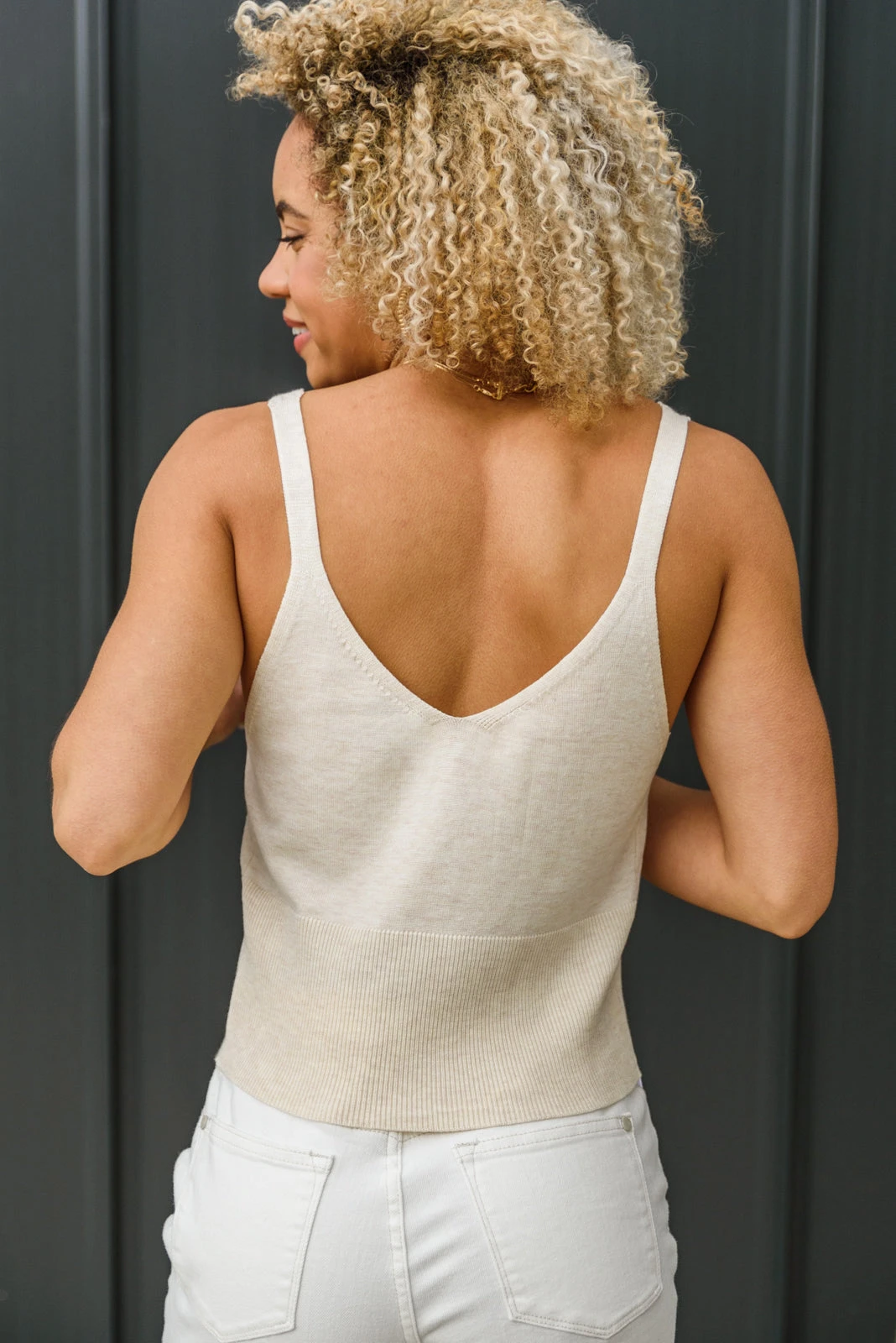 Get your summer wardrobe ready with the Best Part Tank In Natural! This lightweight knit tank features a v-neckline, spaghetti straps, ribbed bodice, and slightly cropped silhouette. Were obsessing over the fact that we can now wear knits year round! Pair this perfect tank with some wide leg jeans and sneakers for a casual & chic look!