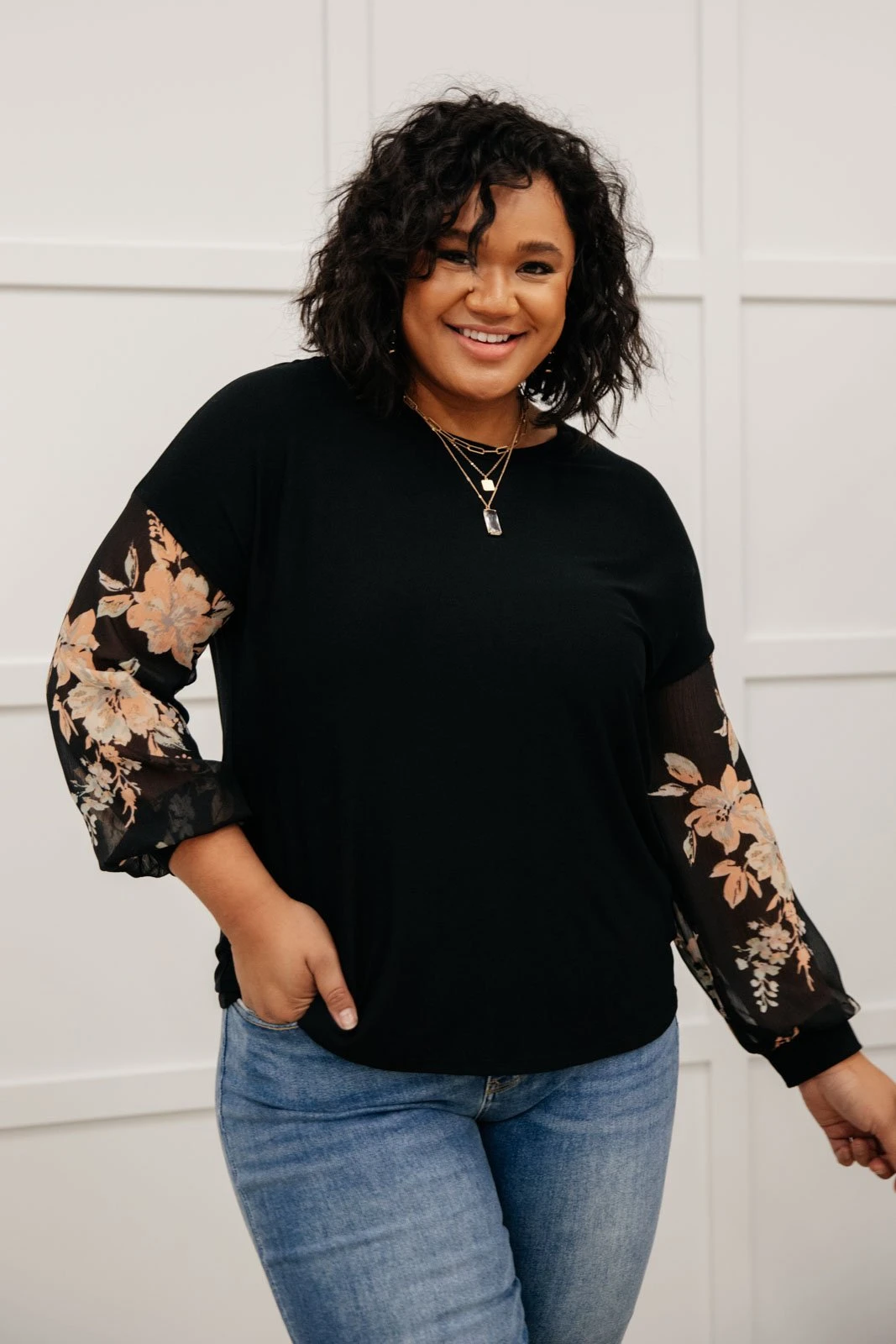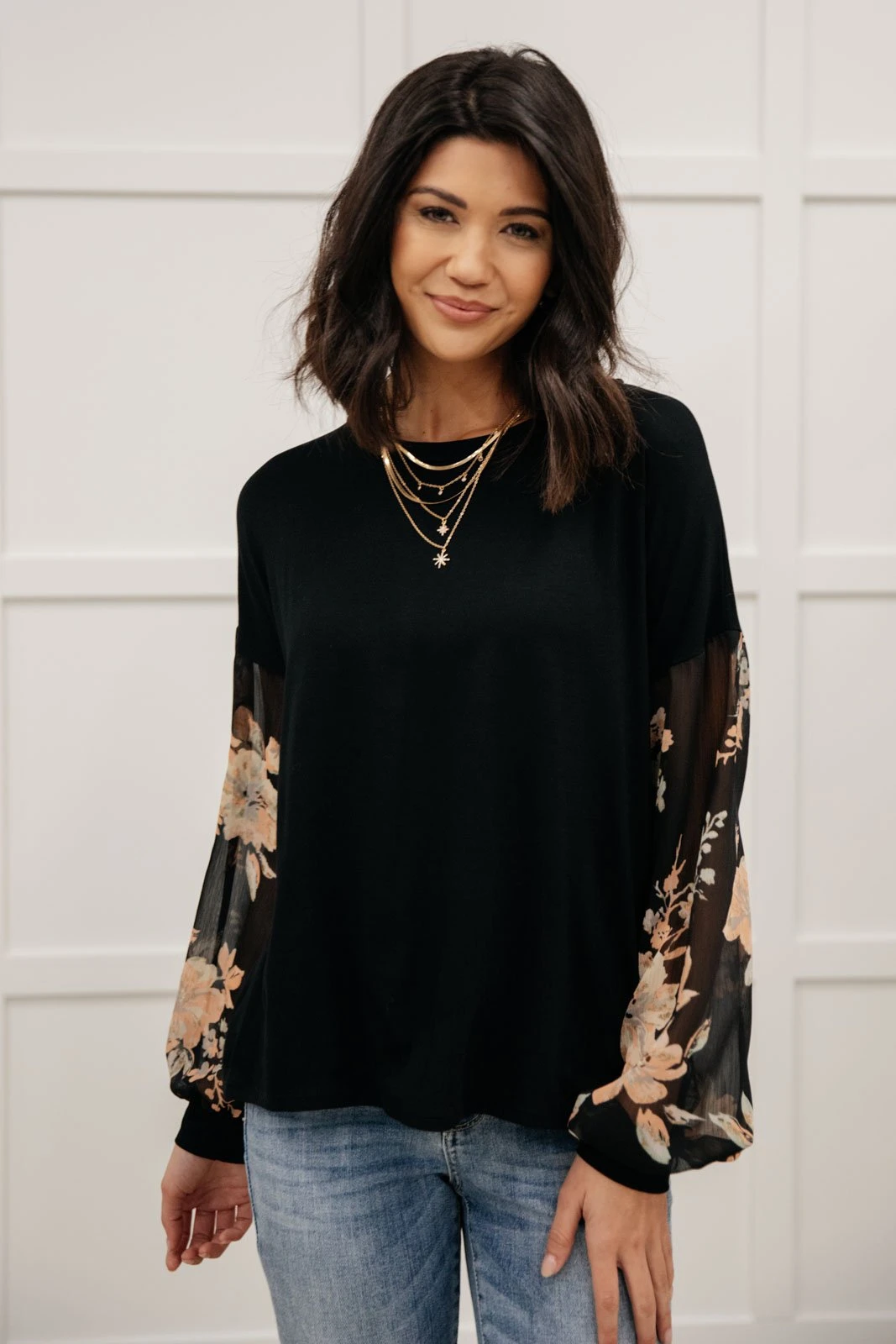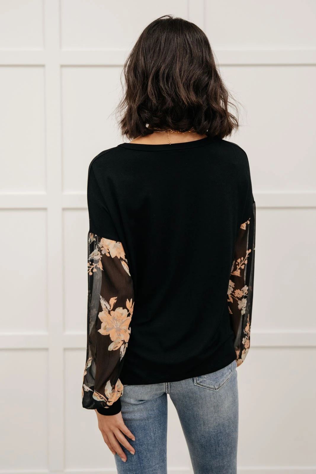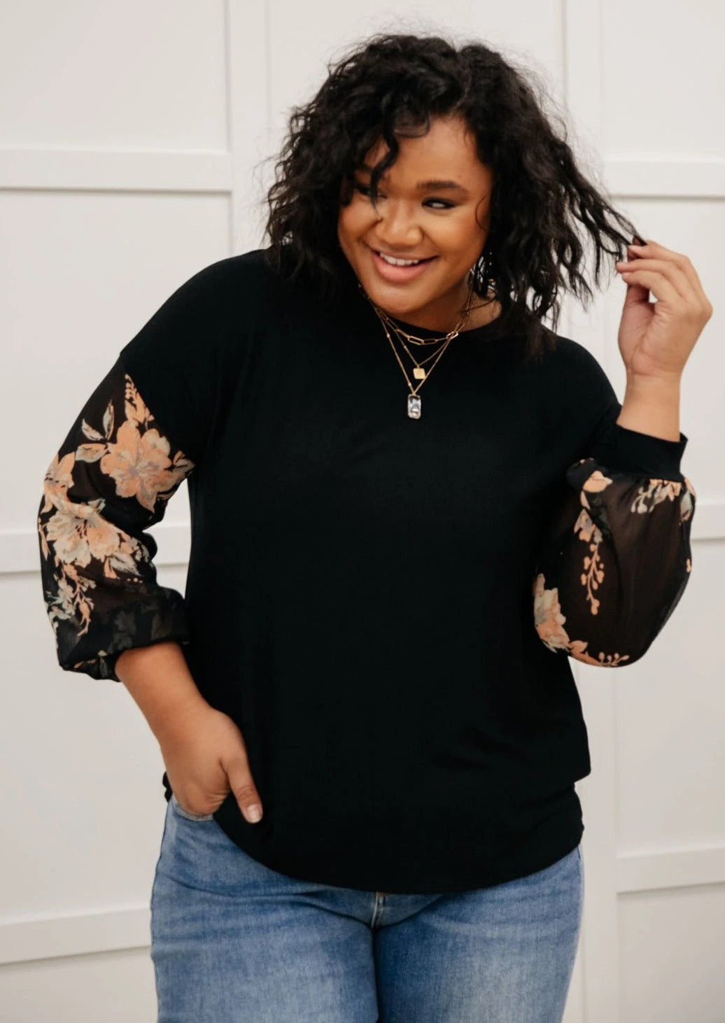 Keywords: Floral Top, Long Sleeve Top, Black Top