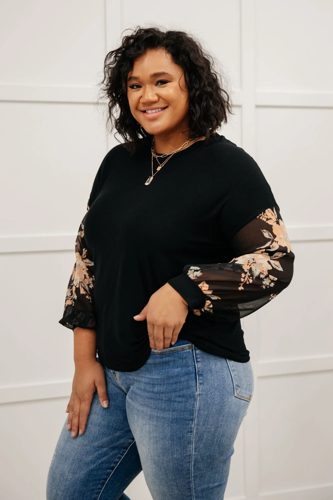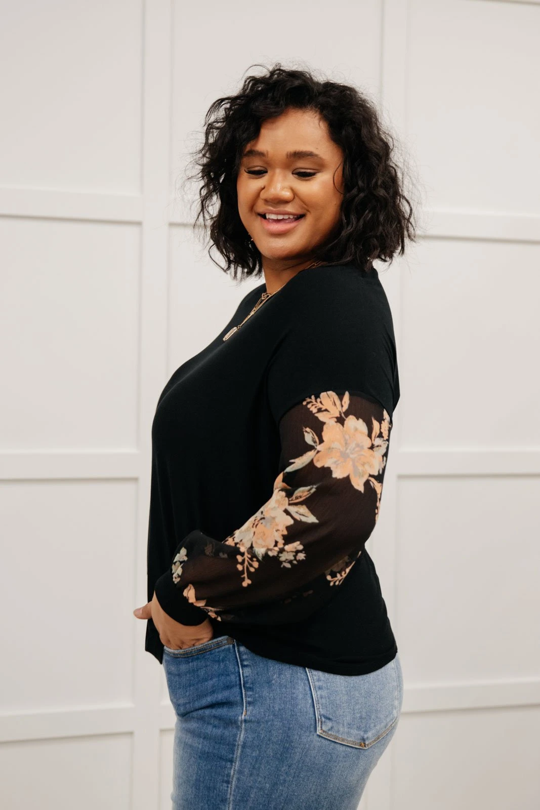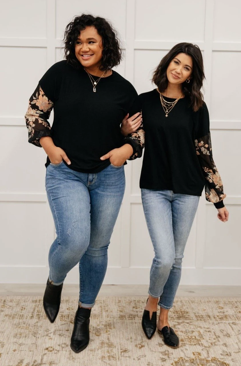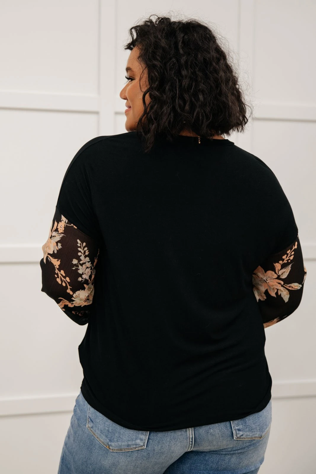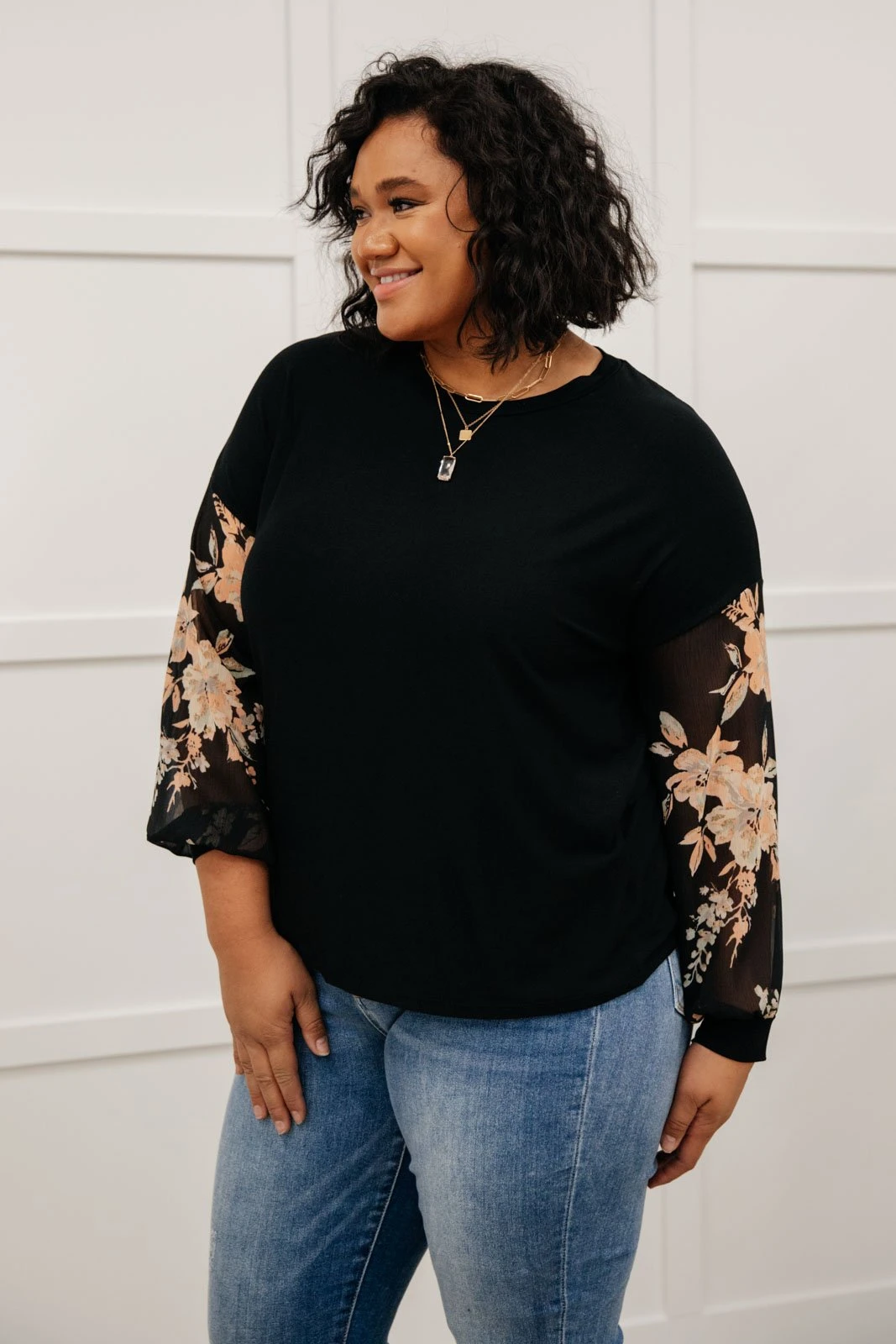 Keywords: Floral Top, Long Sleeve Top, Black Top