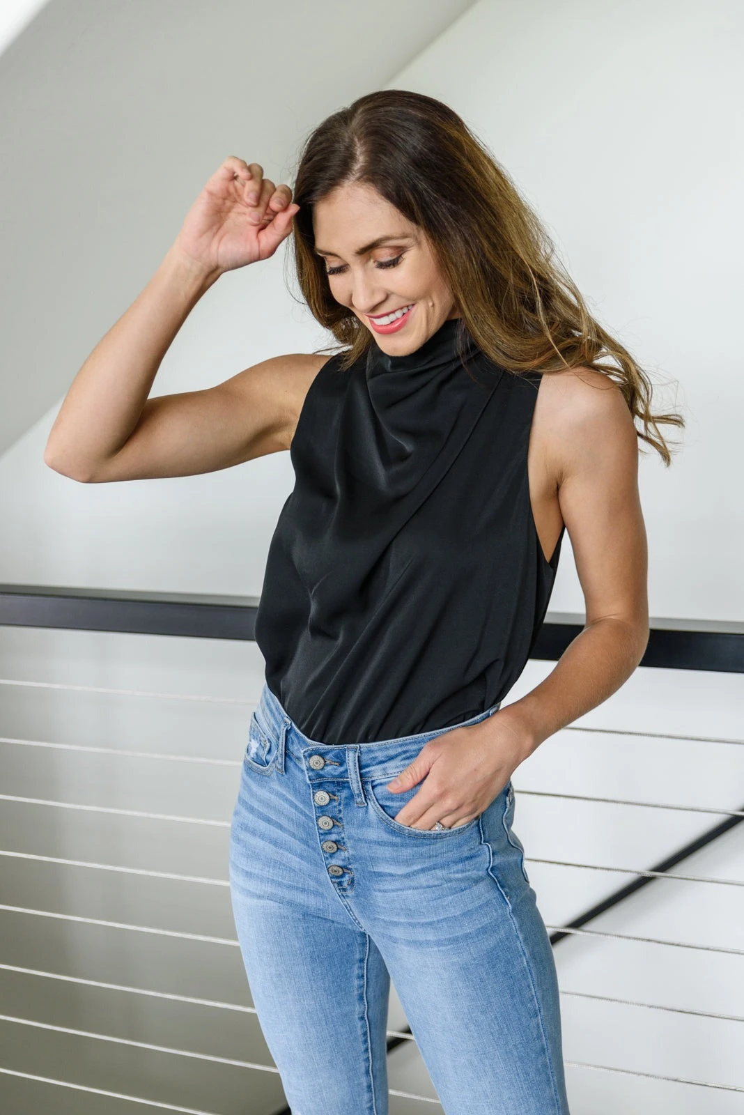 Keywords: Black, Top, Tank, Chic, High Neck