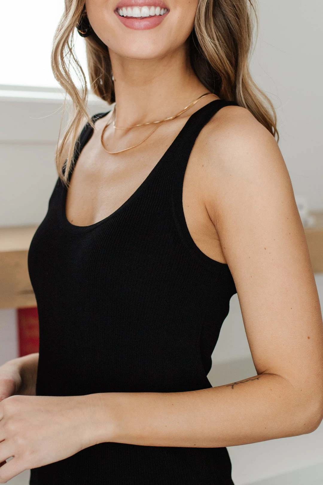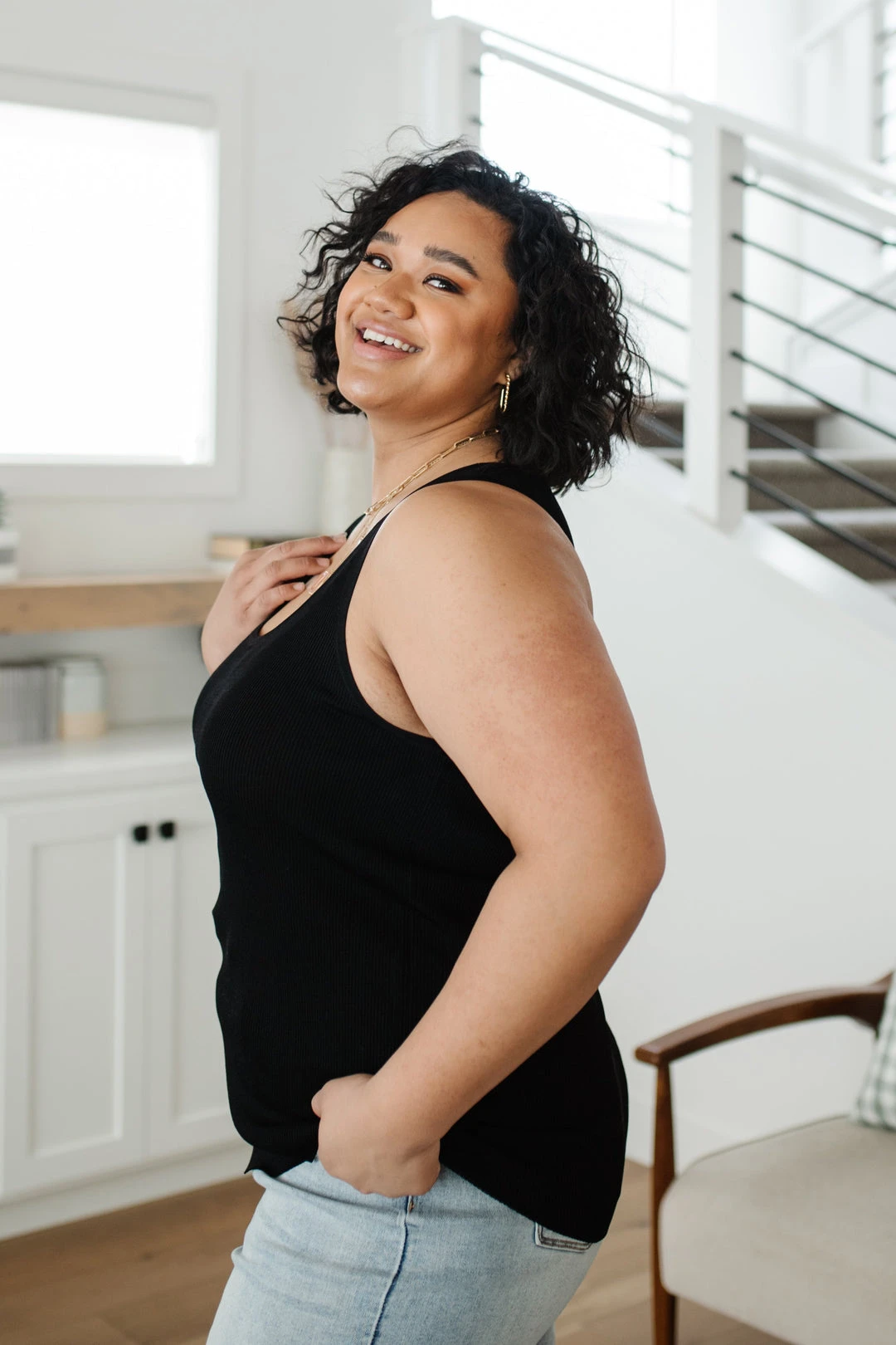 If you like the finer things in life you won’t be settling for anything less than the Take U There Tank. This elevated wardrobe essential is for the fashionista who knows her tools. Start with this top, designed with a perfect fit & scoop neck, then add your statement pieces and select accessories. You’ll find yourself obsessed with the versatility of this exquisite base layer. We love this top styled with blazers and slacks, Paper Bag waistline shorts, skirts, styled with open button up tops, under spaghetti strapped jumpsuits & dresses and more! Even when worn simply with a great pair of denim, slides and a simple bracelet, this top keeps you looking fresh, polished & put together. The engineered knit construction means the ribbed fabric texture through the body and edges are finished seamlessly. Whatever look you have in mind the Take U There Tank is it!
