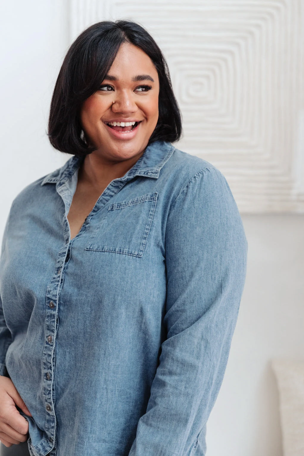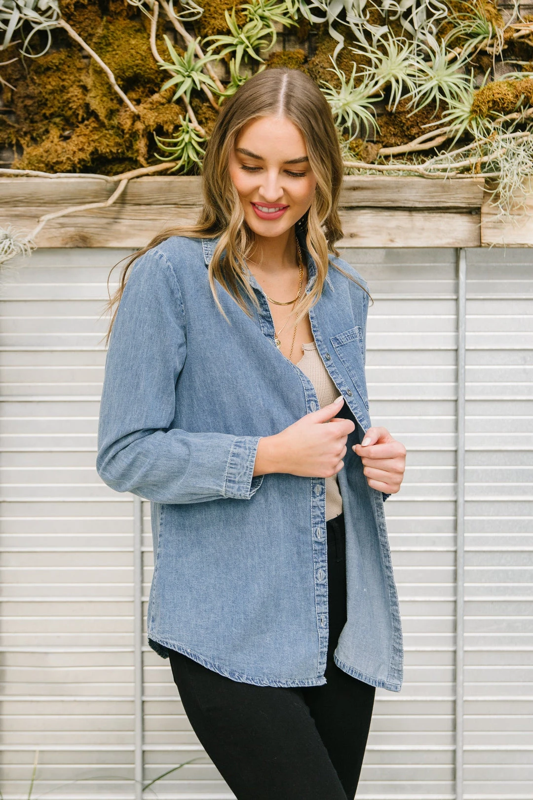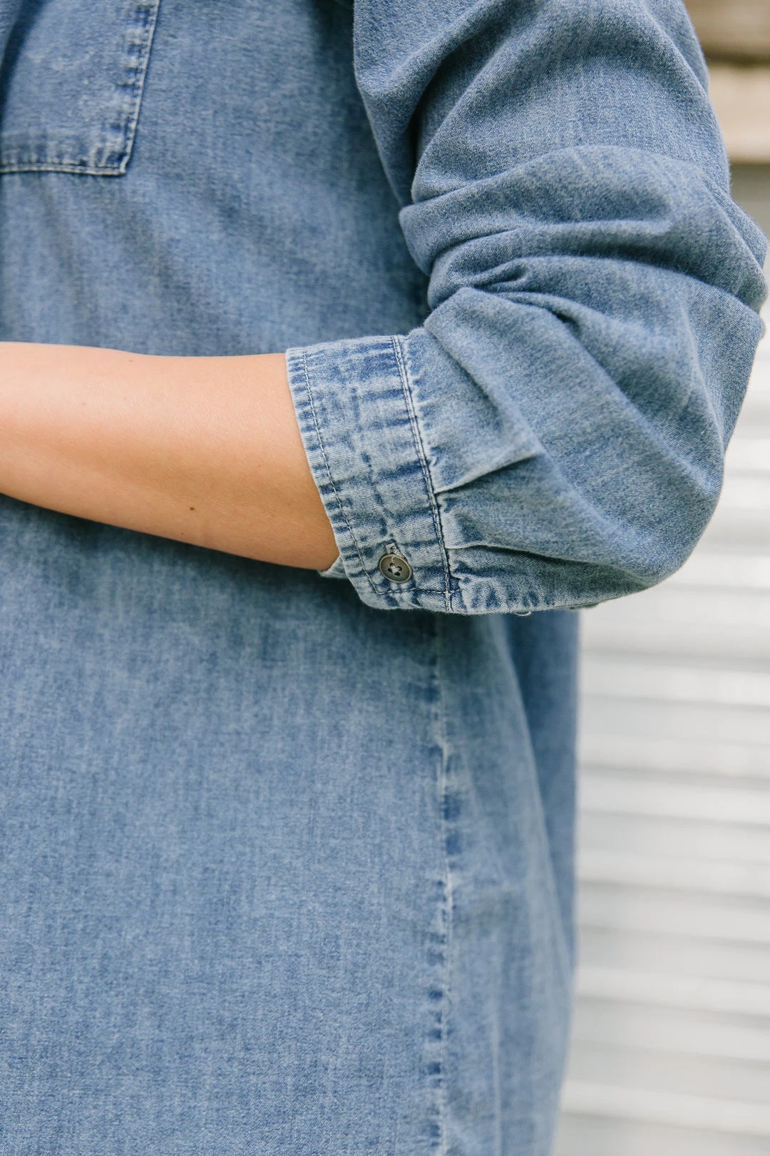 - Lightweight denim + Functional buttons