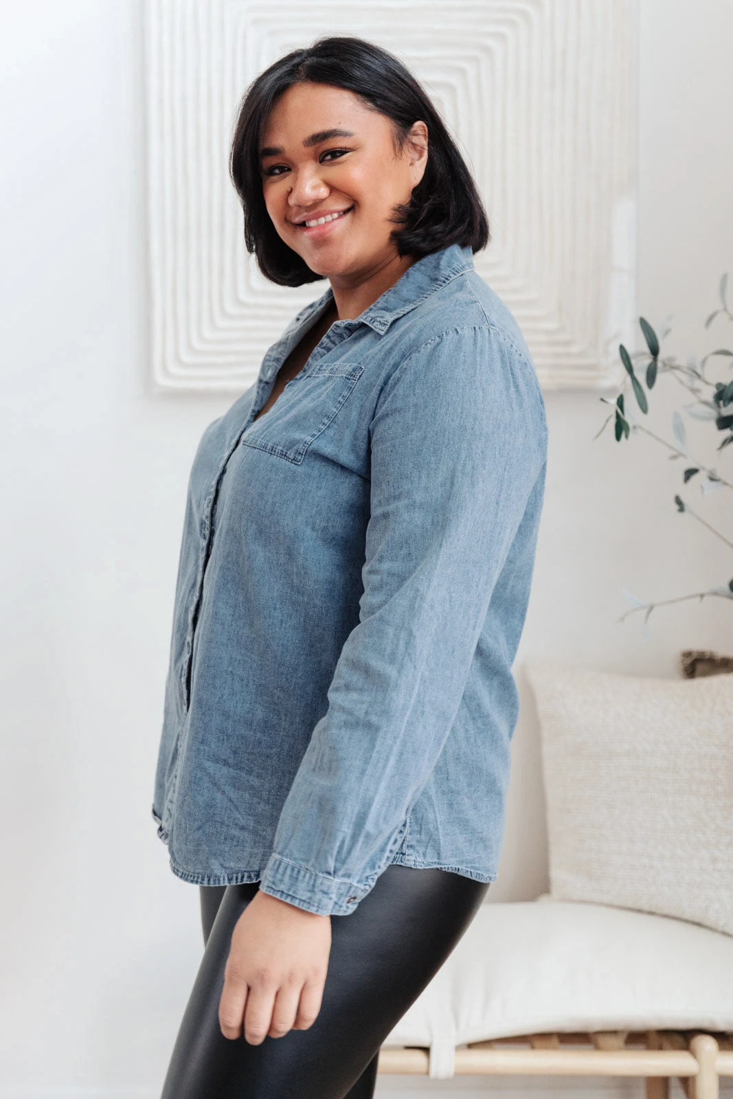 The Call Me A Cab Button Up is the perfect balance of sleek and easy. It is an essential top that has so much versatility. Thin enough to tuck into your favorite pants or skirts and perfect for leaving untucked, unbuttoned, or as a layering piece. Style it your way