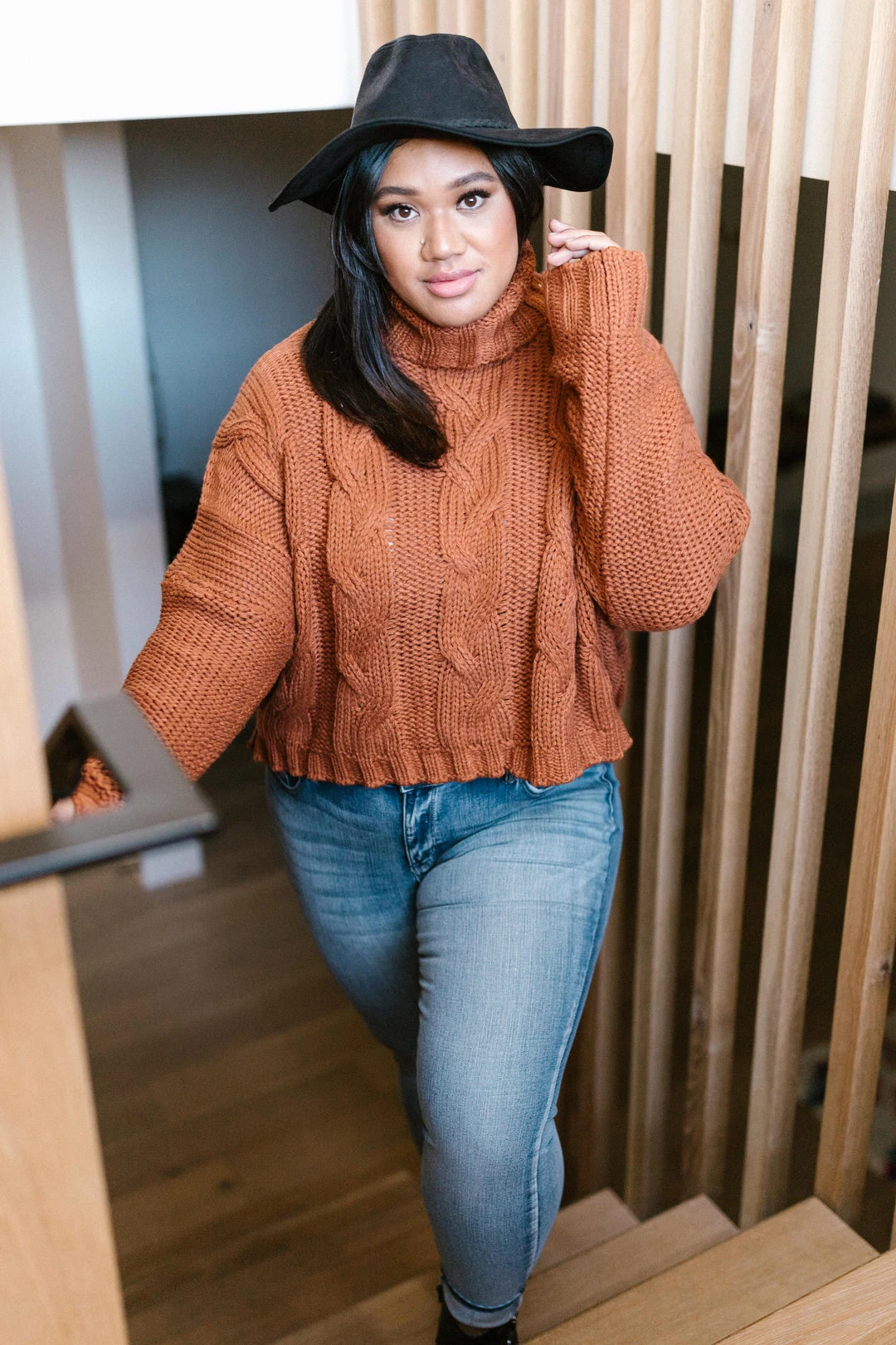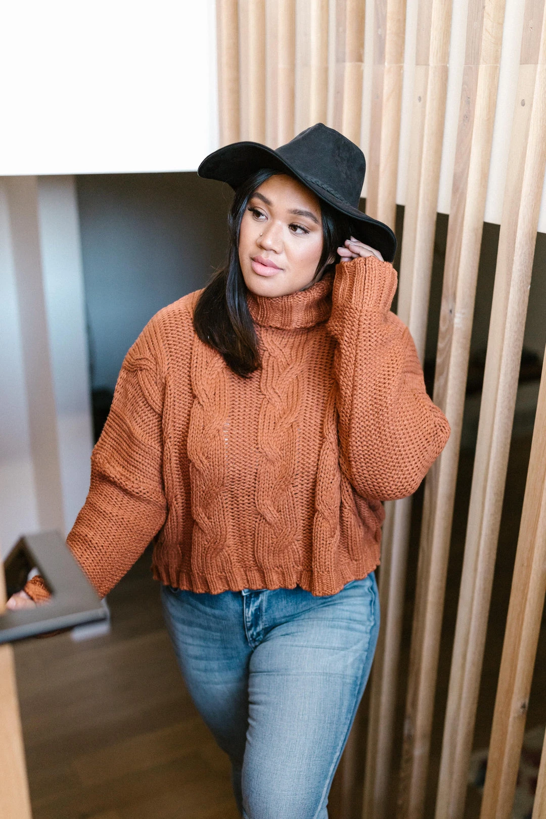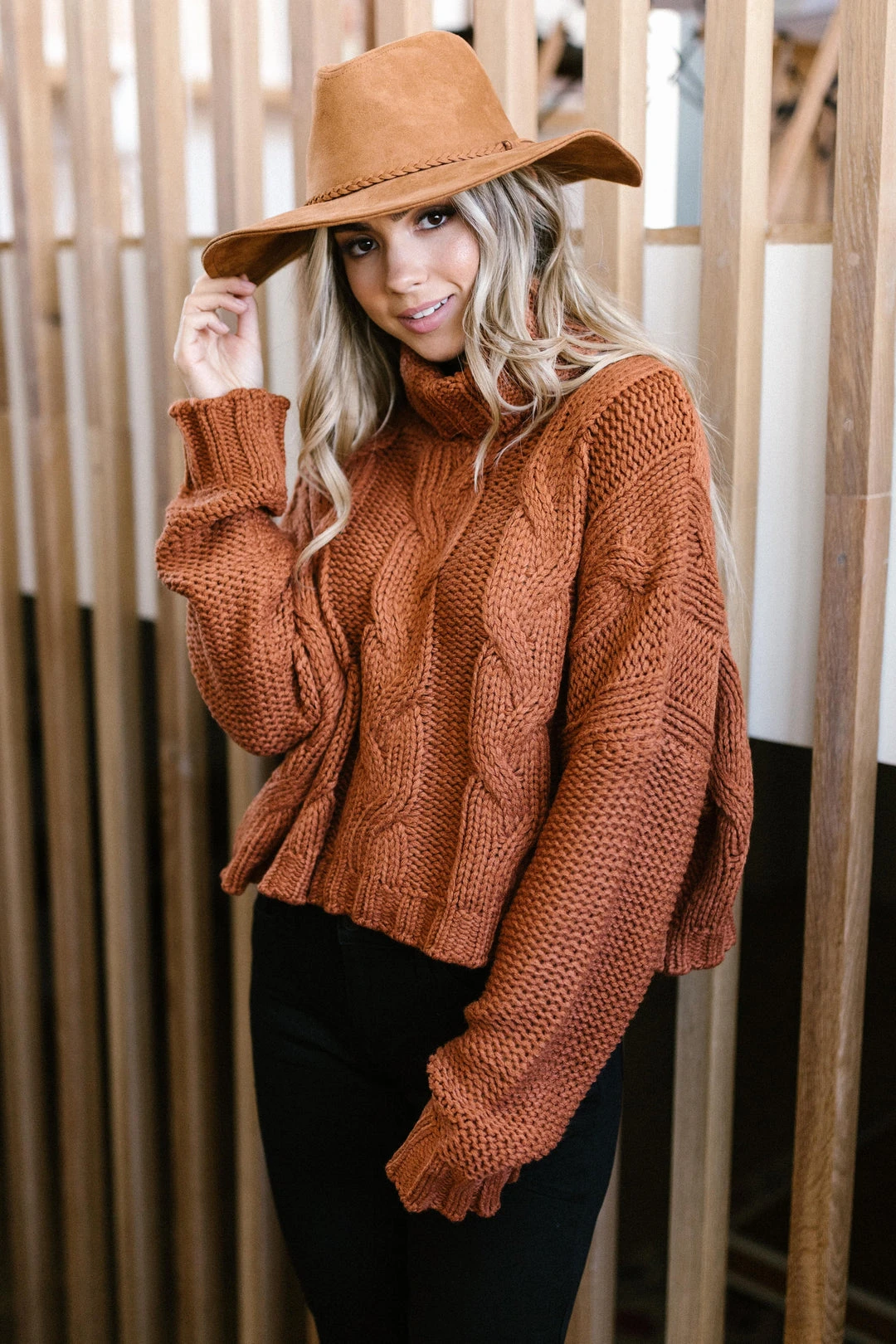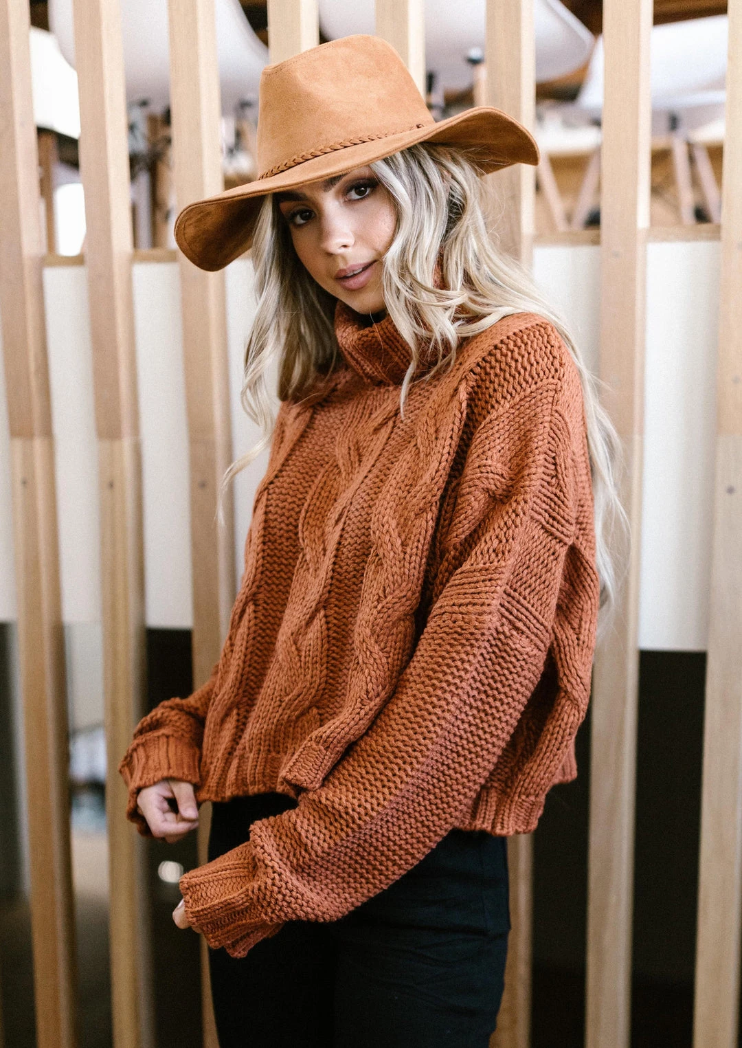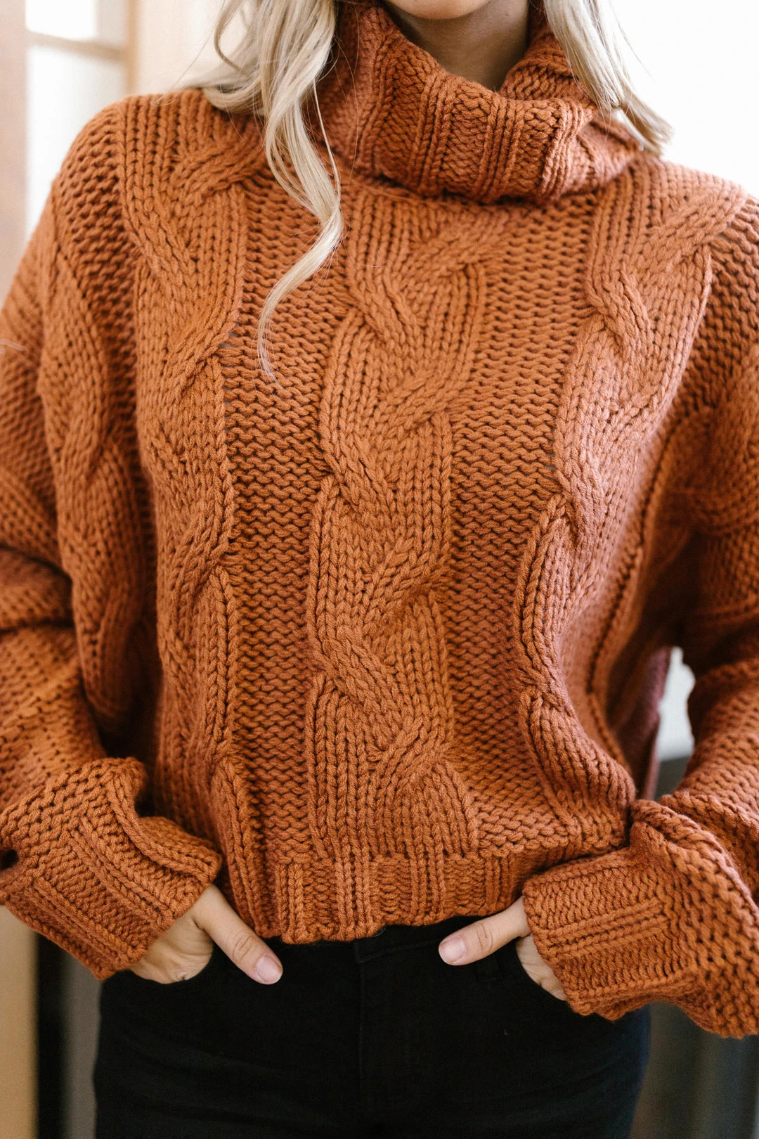 - Elevate your winter wardrobe with the Ave Shops Classic Cable Knit Sweater in Ginger Spice. This timeless piece combines warmth and style, making it perfect for chilly days.