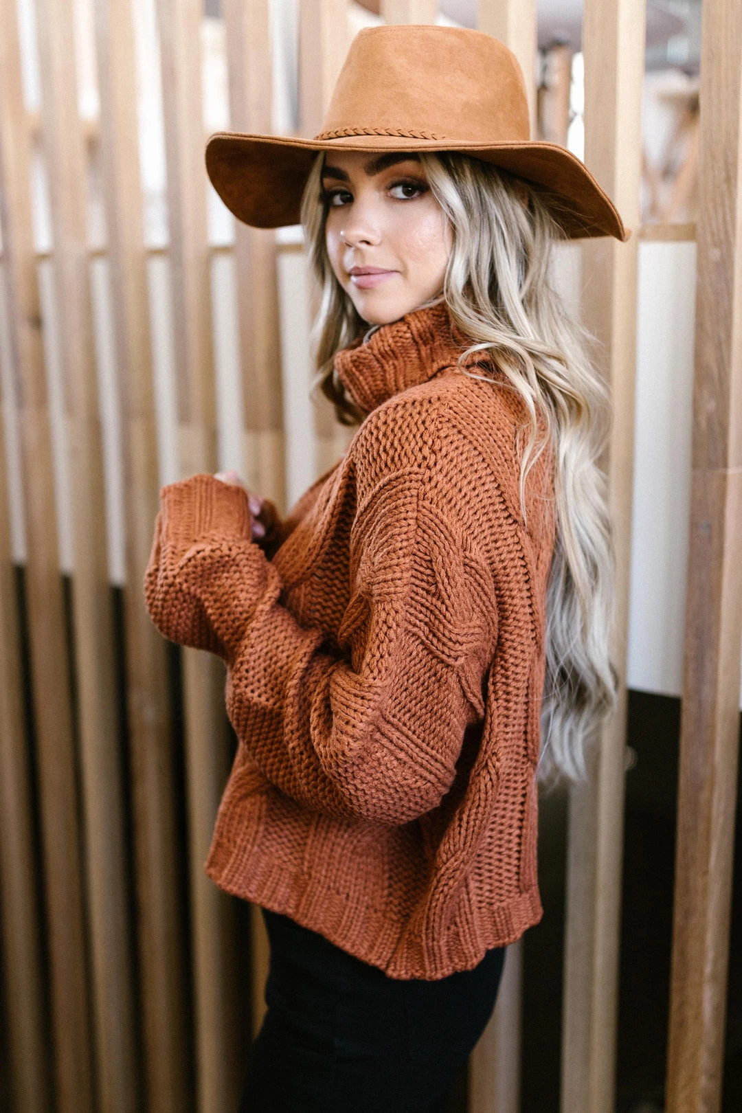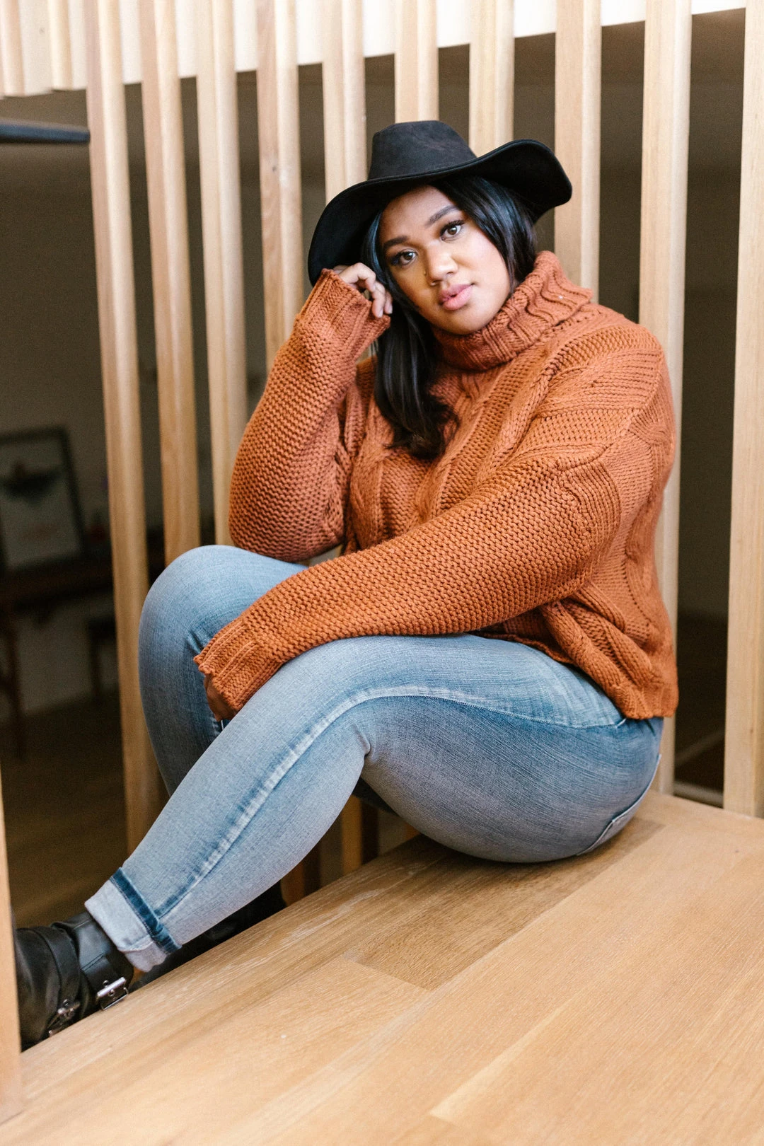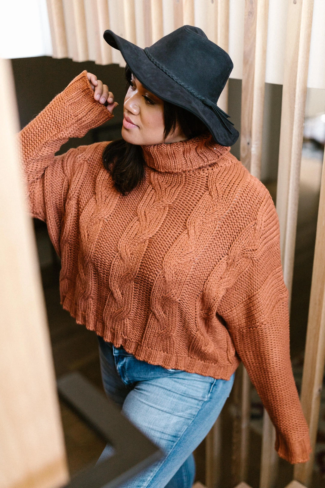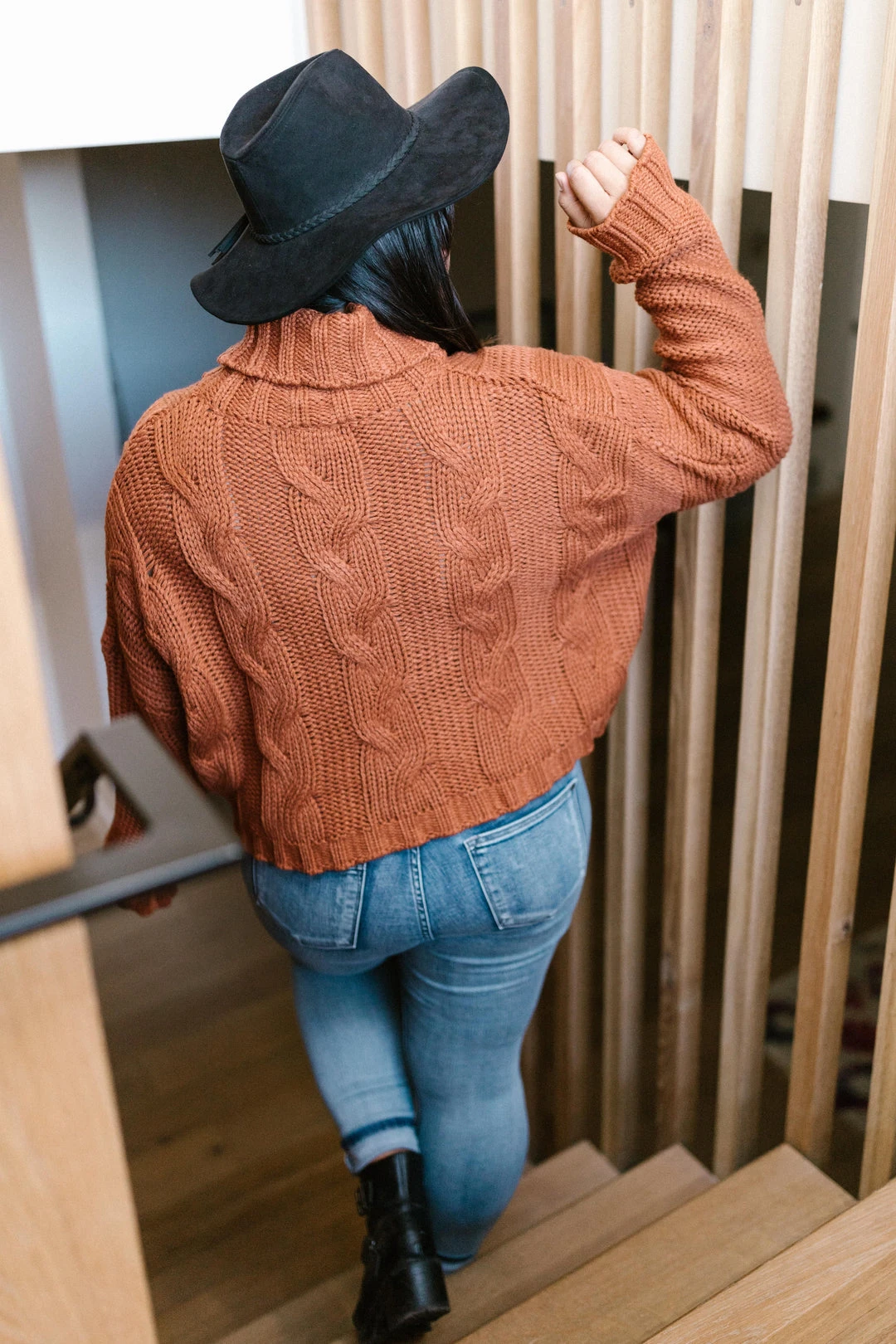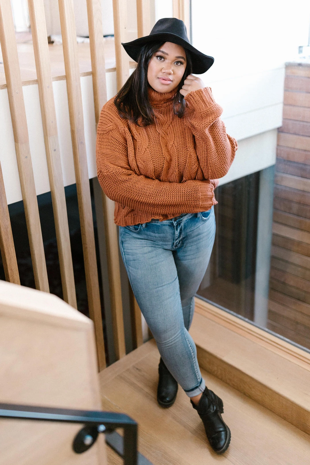- Elevate your winter wardrobe with the Ave Shops Classic Cable Knit Sweater in Ginger Spice. This timeless piece combines warmth and style, making it perfect for chilly days.