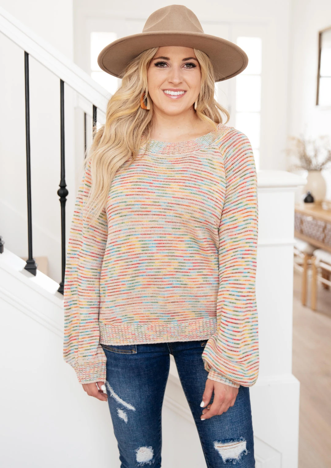 Keywords: Sweater, Multi Colored Sweater, Colorful, Tan Sweater