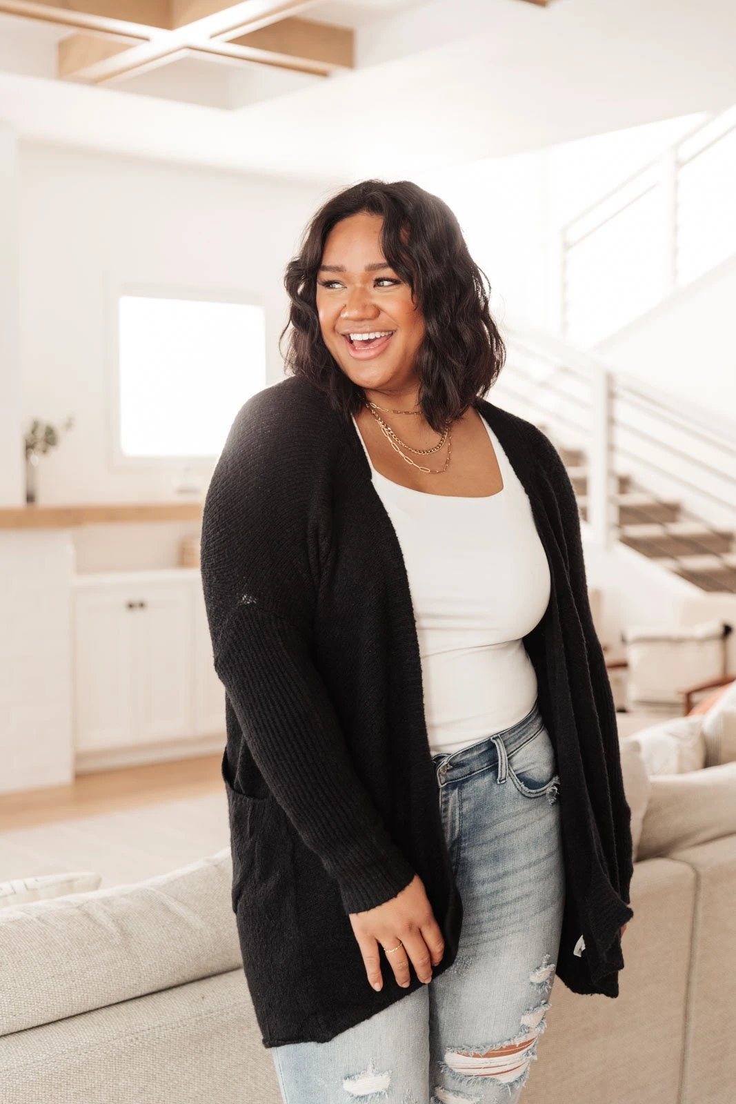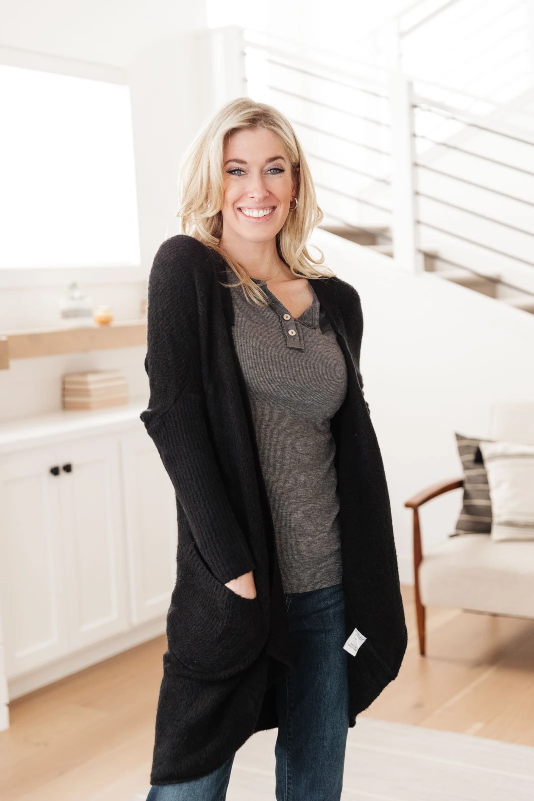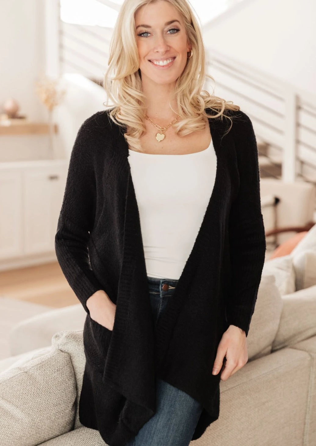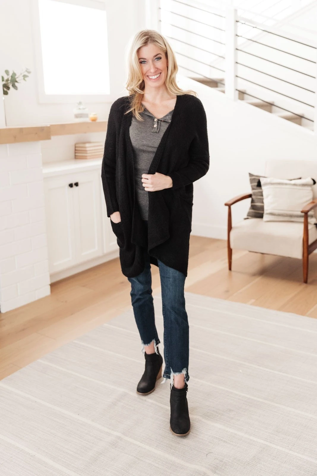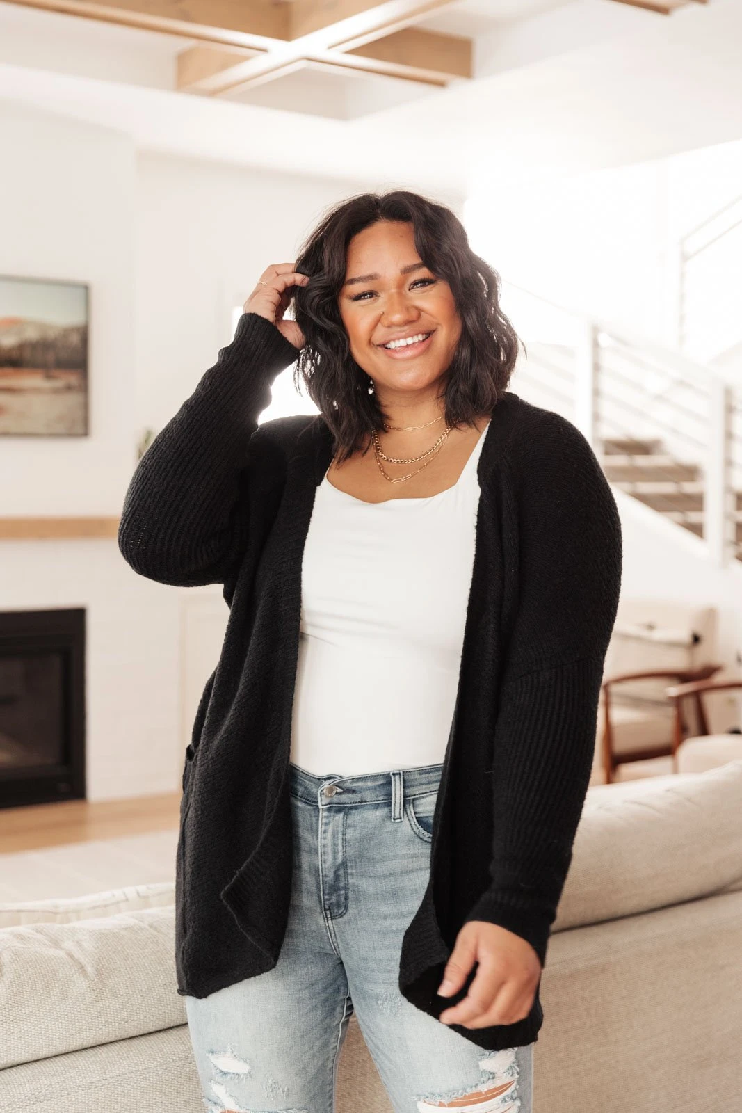Complete your look with the Cozy Nights Cardigan! We love the dolman sleeves, draped open front and side pockets. It’s a perfect layering piece to dress up or down! Trust us, you won’t regret it!