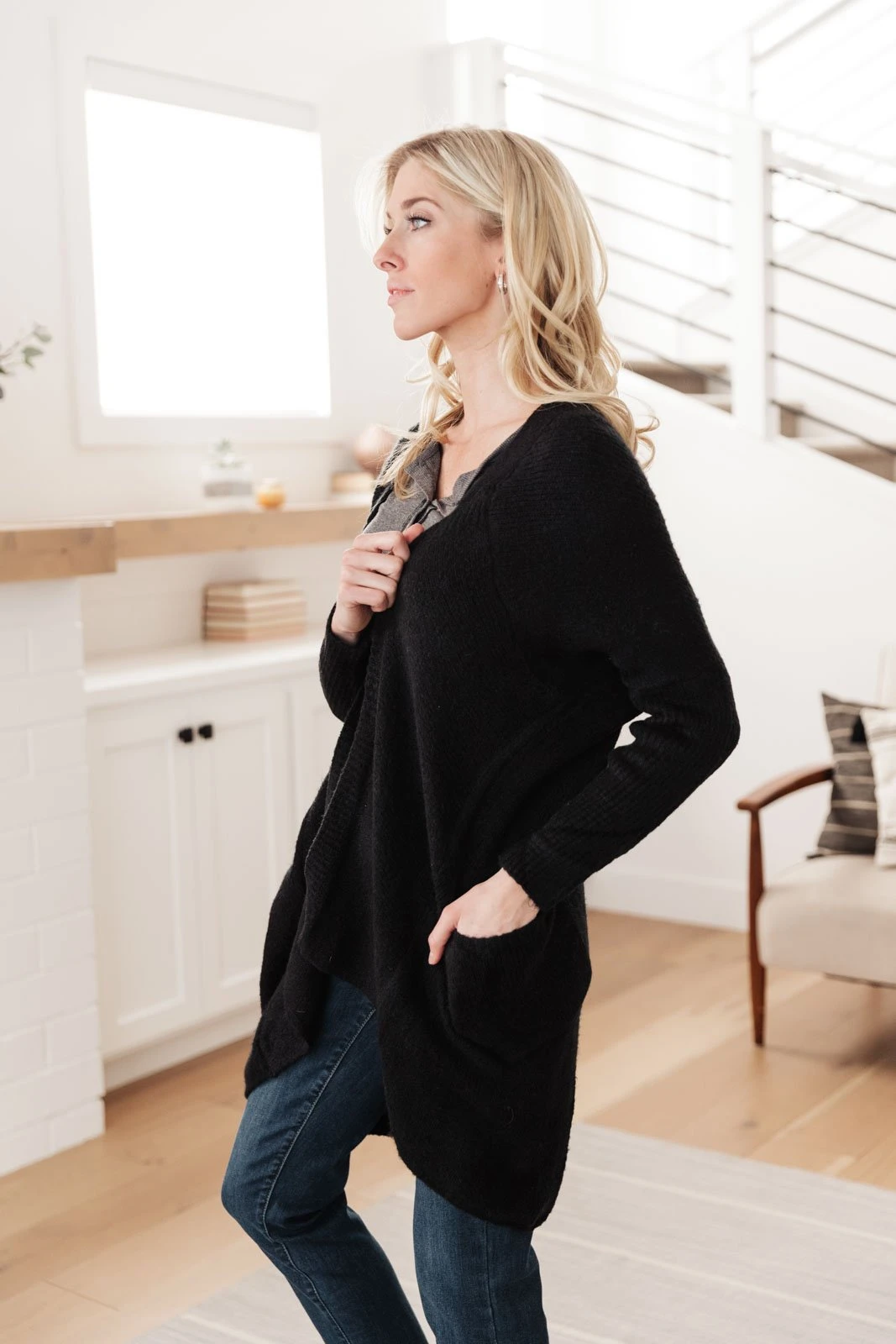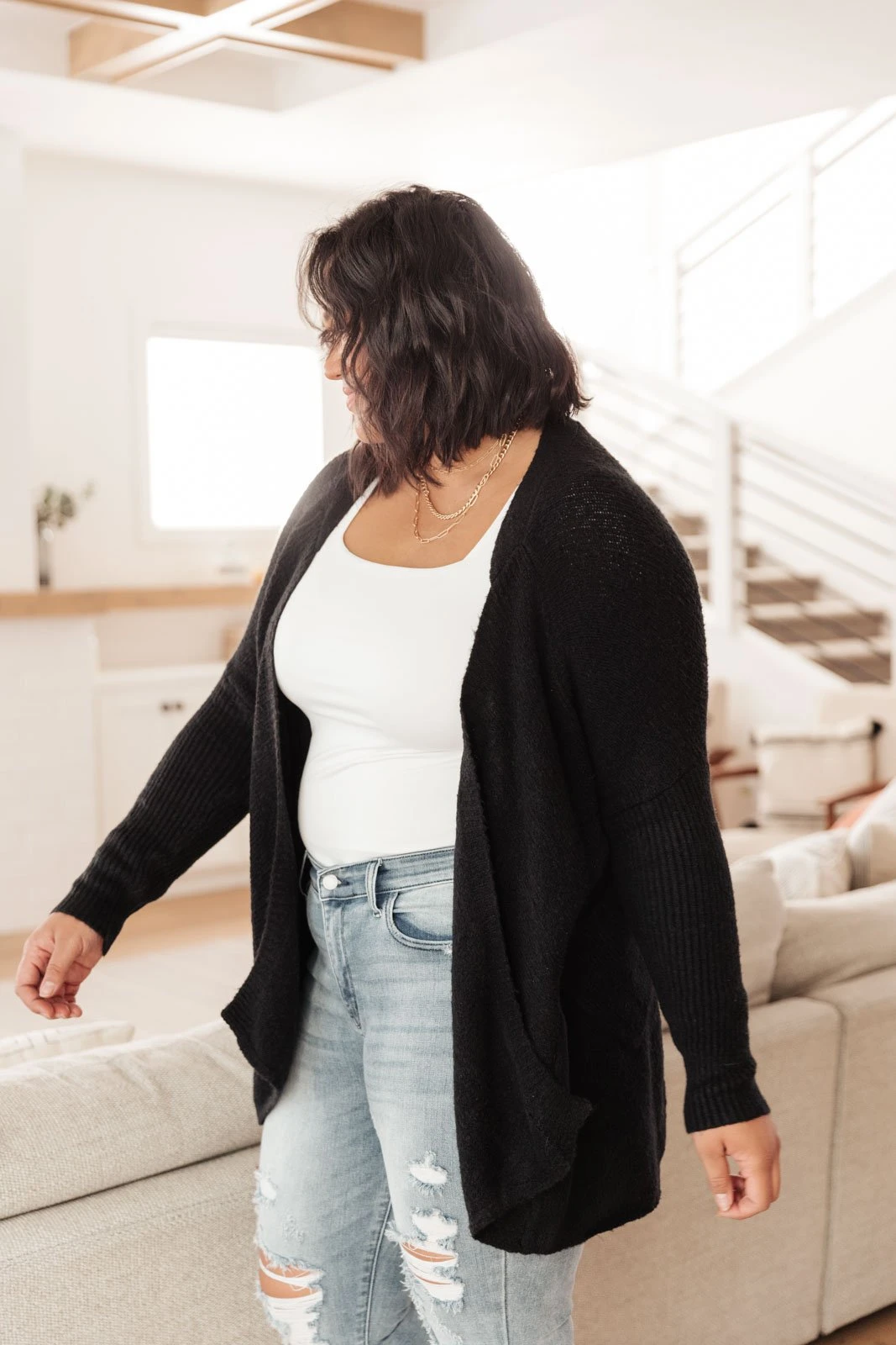 Keywords: Cardigan, Dolman Sleeve, Black Top,