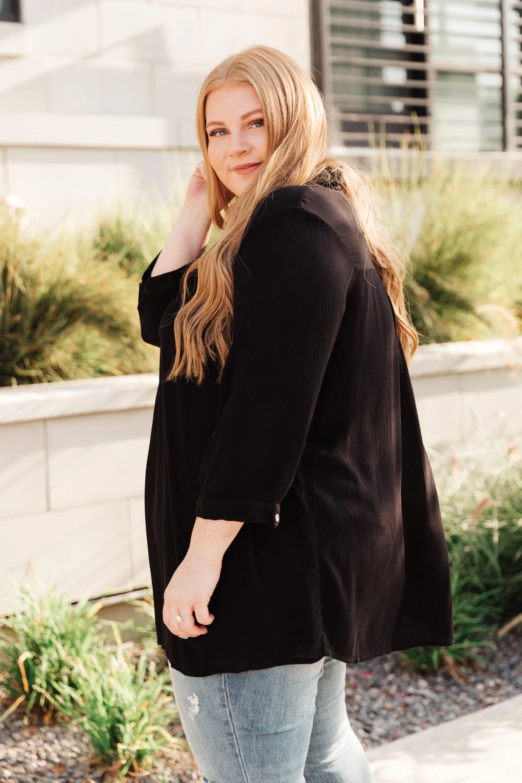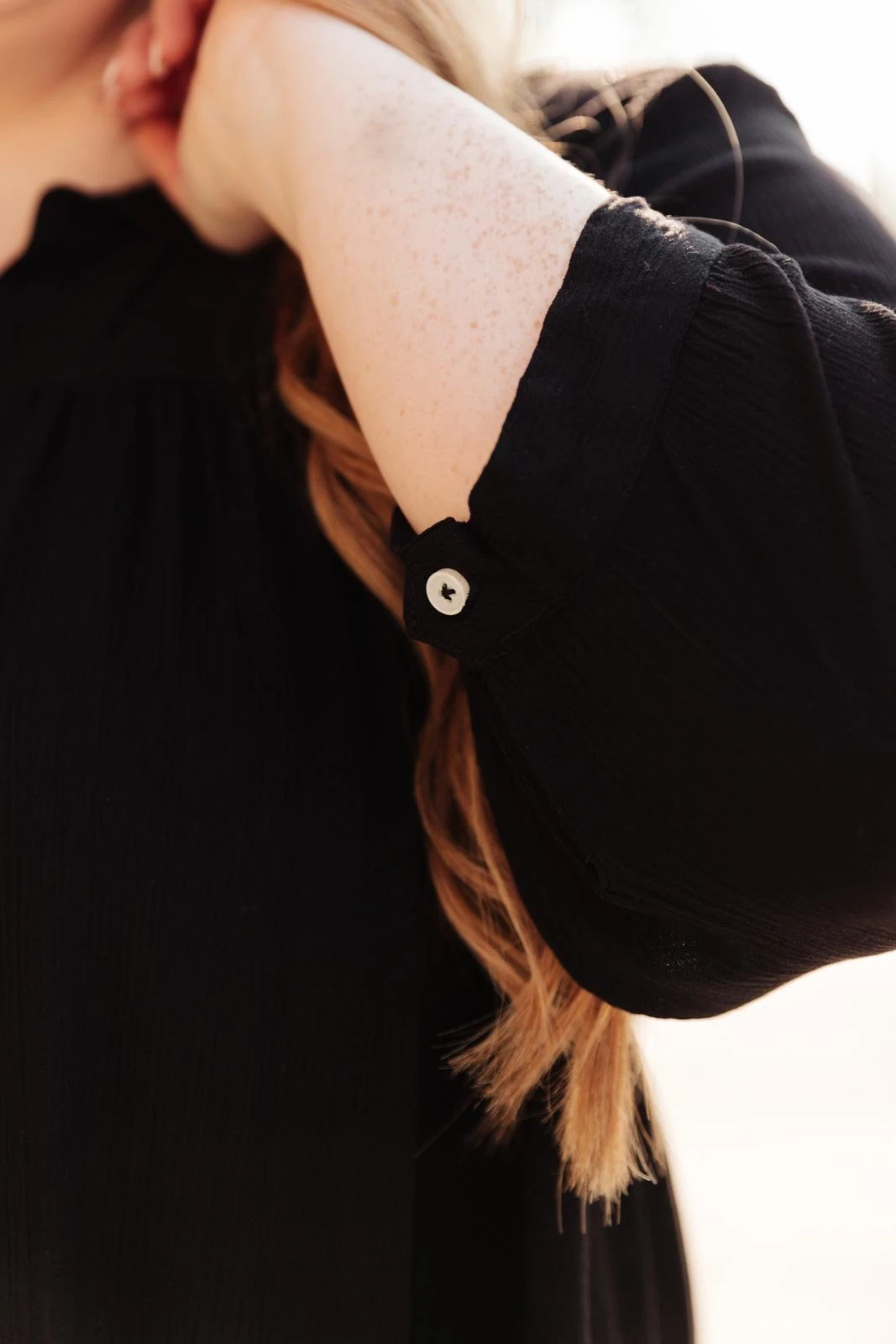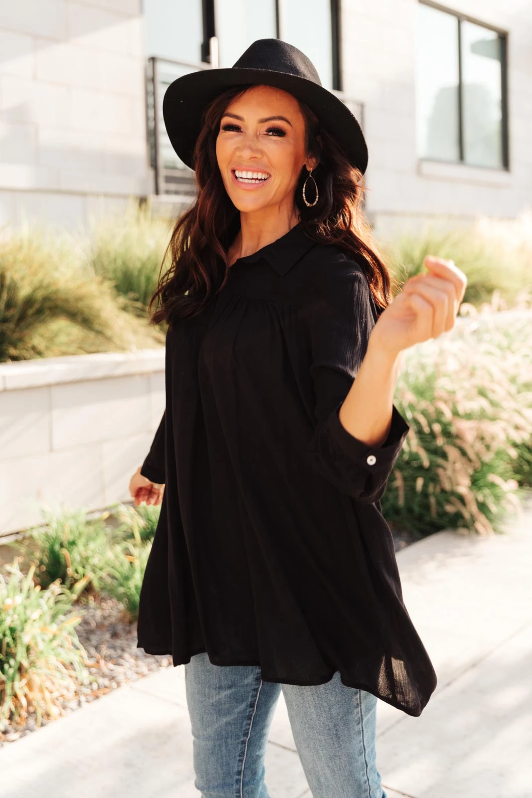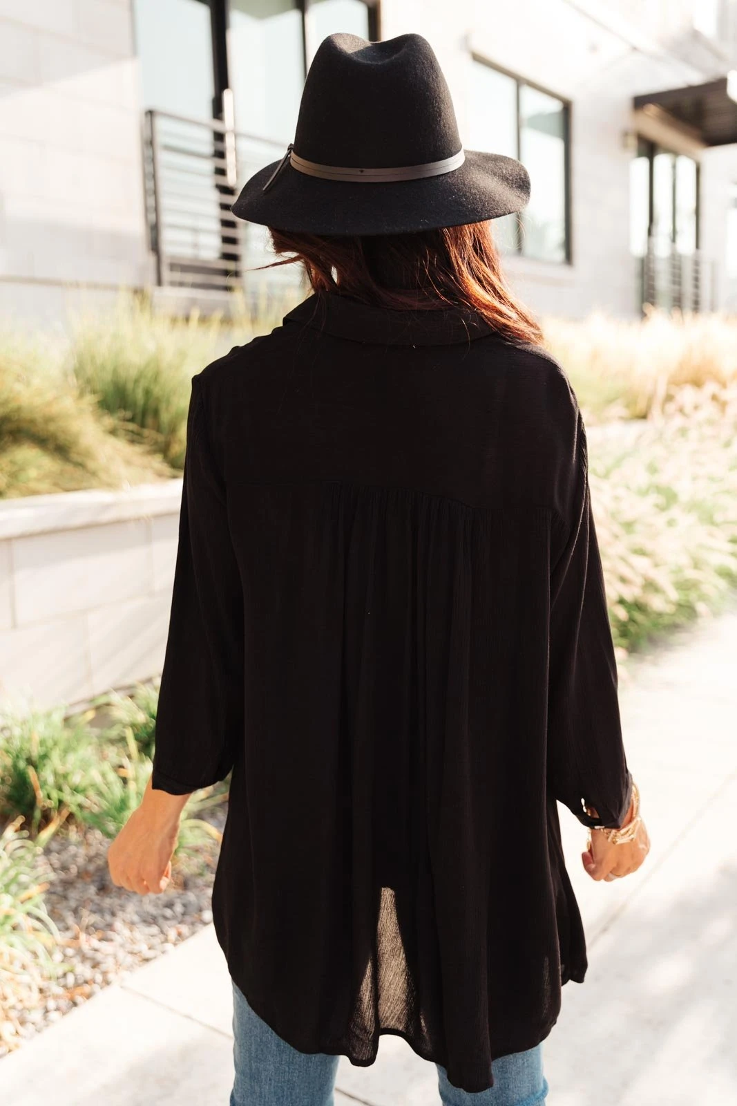 Keywords: Black Shirt, Long Sleeve Top, Loose Fitting Top