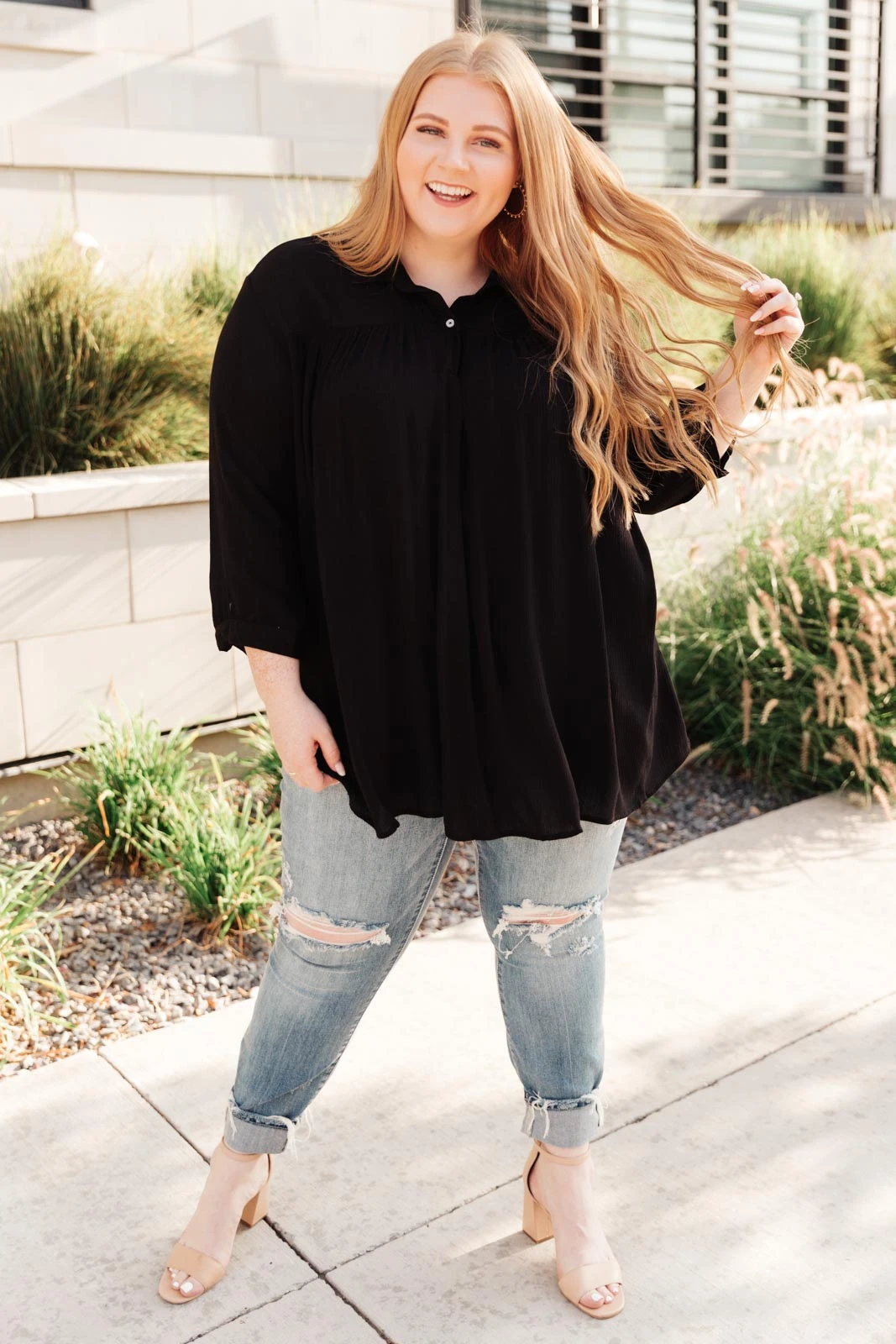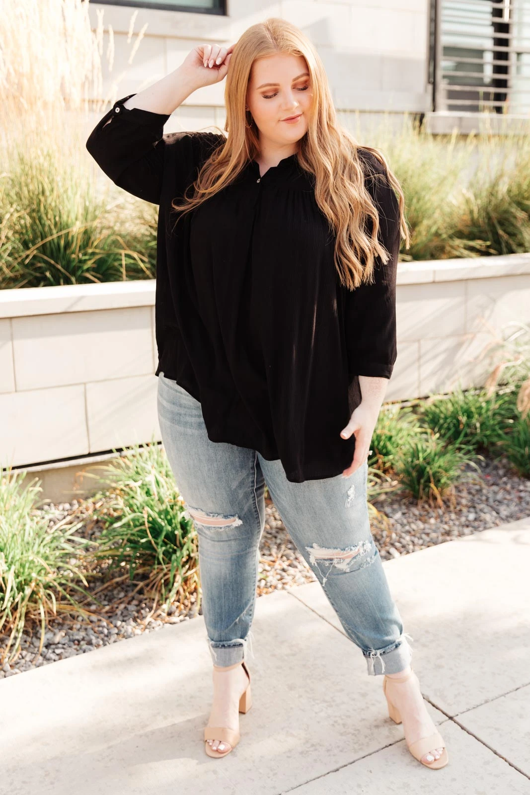 The Darla Top is a beautiful relaxed silhouette with functional buttons at the neck. This flowy top is perfect for the changing weather. Pair it with leggings or jeans and ankle boots.