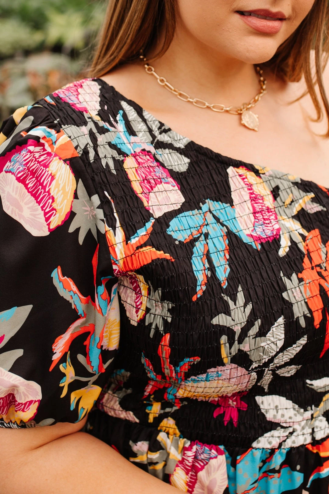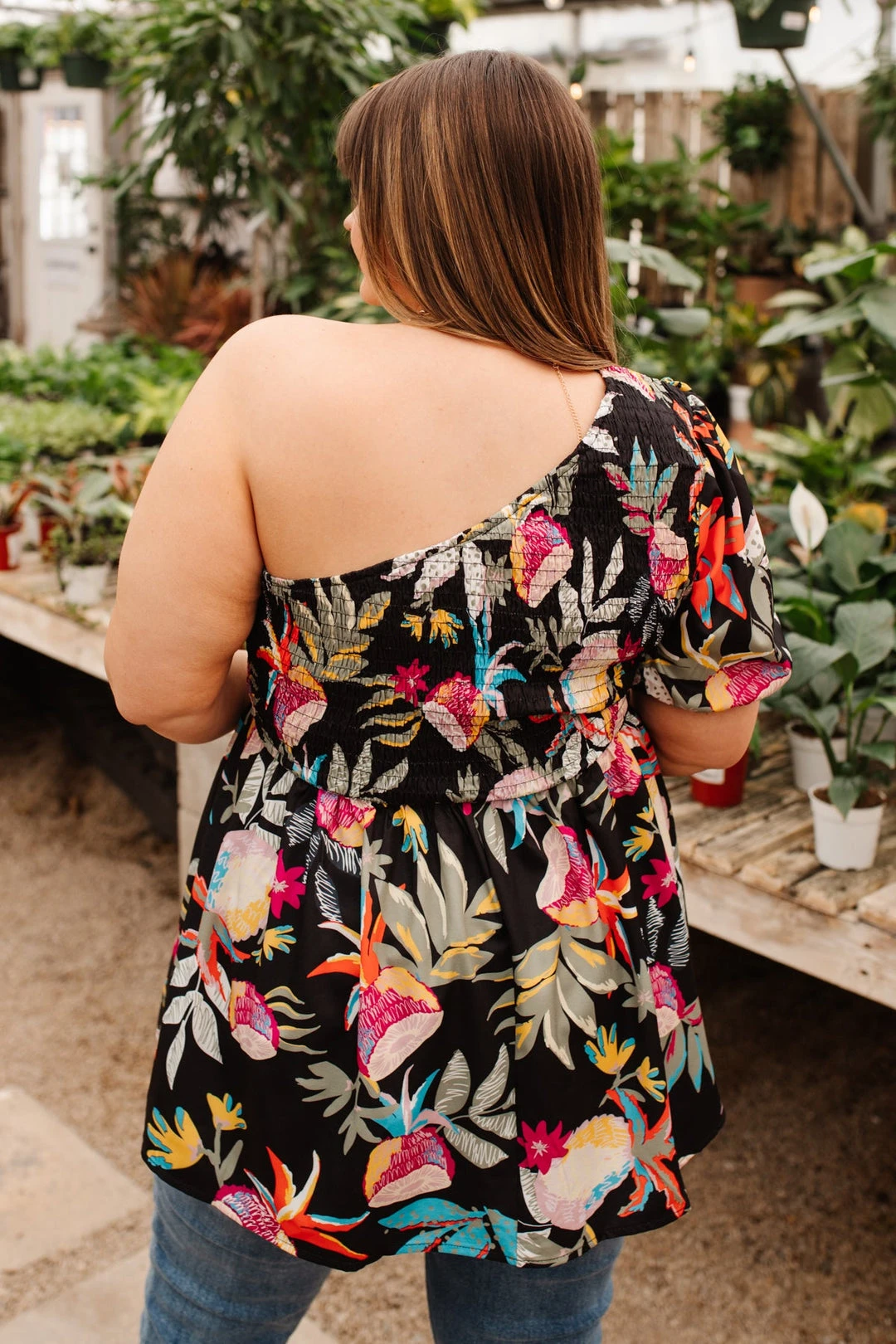 Keywords: One shoulder, Floral Print, Blouse