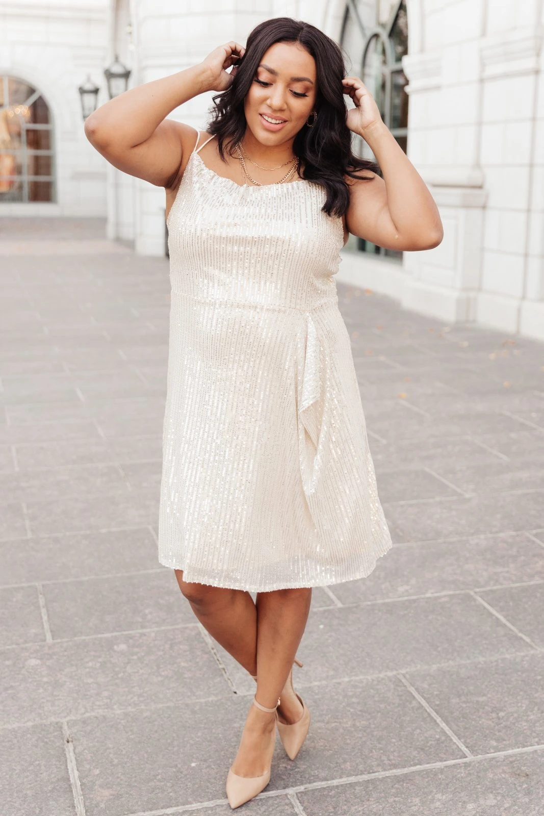 Make a head-turning entrance in the Disco Queen Dress! Gold shimmer sequins, folded ruffle detail on the wait line gives you movement and style. Adjustable back straps to fit you perfectly and keep you shining all night long!