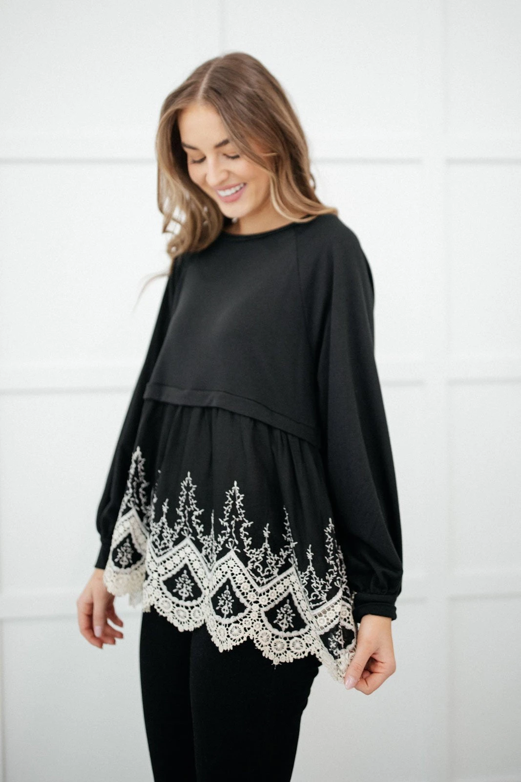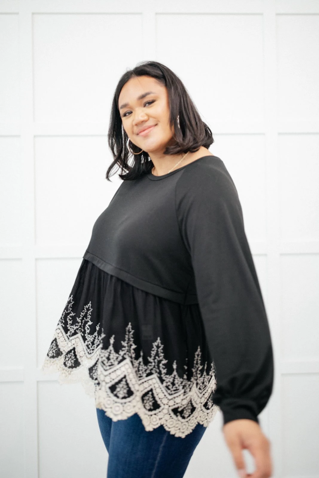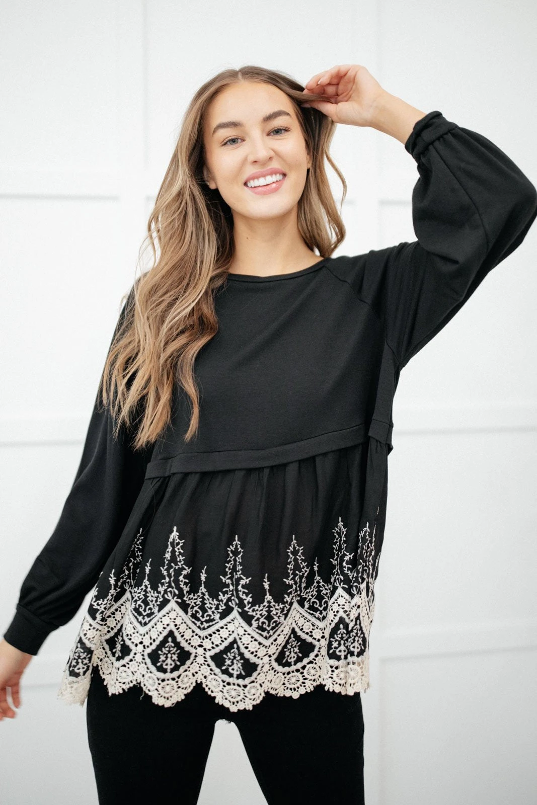 Keywords: Black Top, Lace, Babydoll, Balloon Sleeve