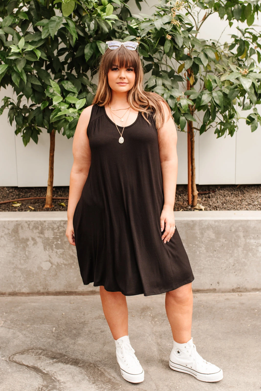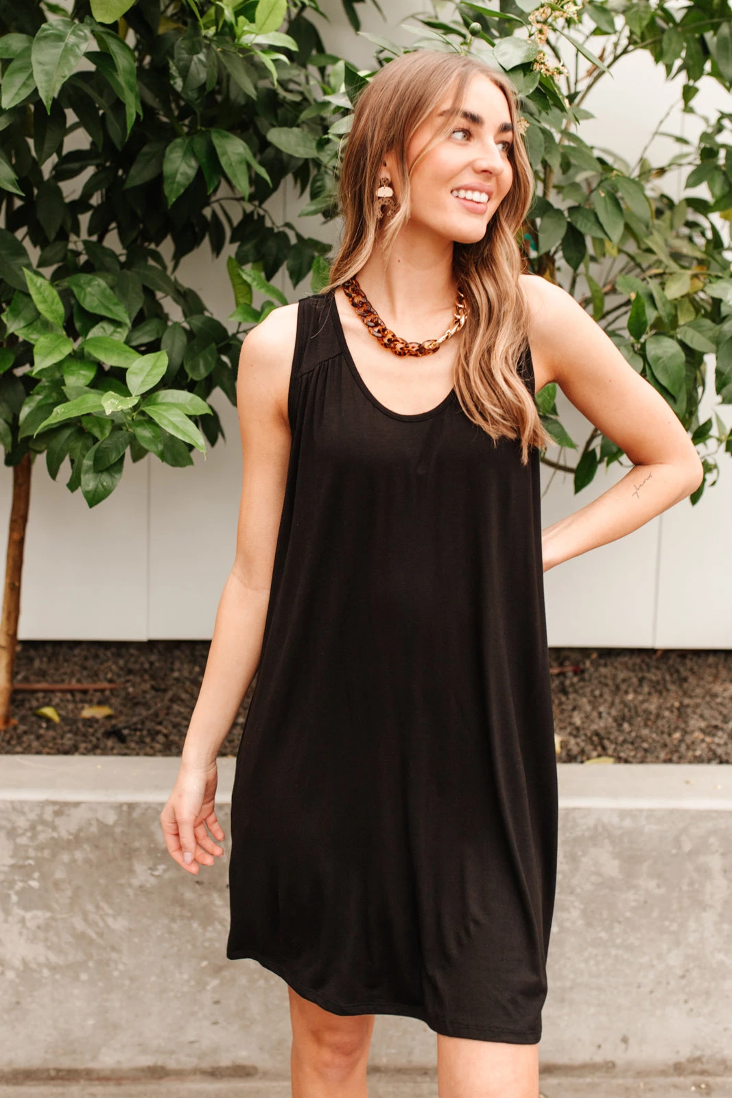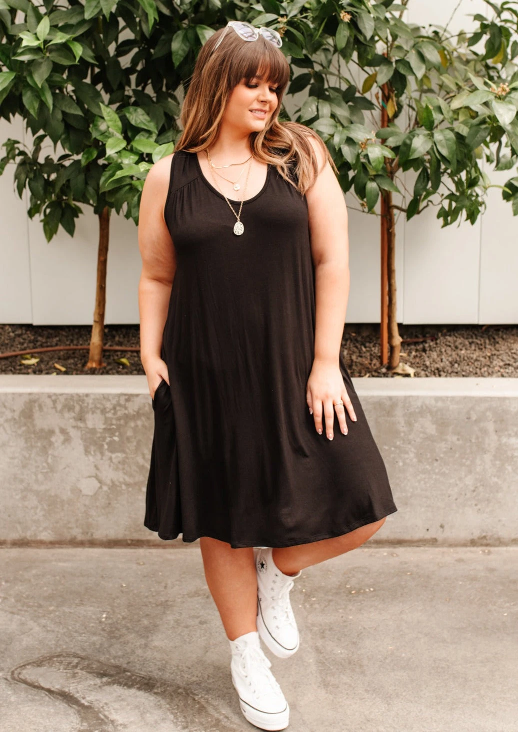 Everyone knows of the iconic little black dress made famous by the lovely Audrey Hepburn…well, the Exact Moment Dress is the little black dress your closet is missing! This perfect dress features a scoop neckline, side seam pockets, a-line silhouette and gorgeous crochet back, resembling a butterfly. Keep it iconic with black heels and a black bag, for a chic, put together look!