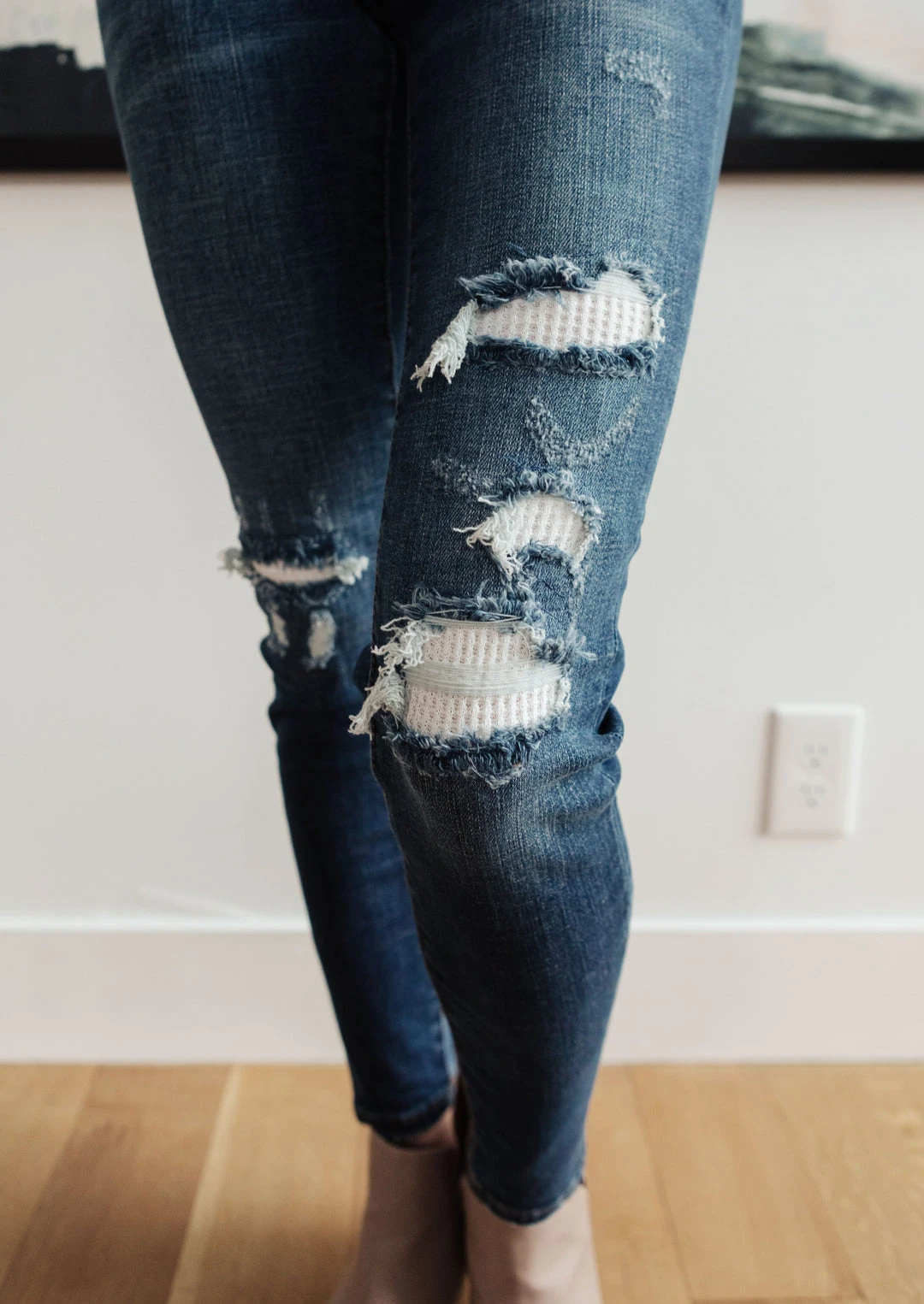Distressed Jeans + White Thermal Lining