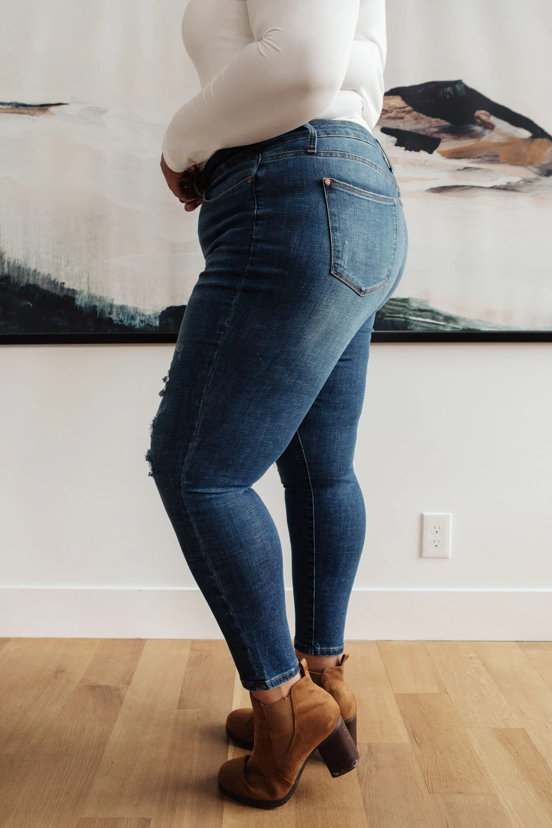 The “Feelin’ Warm Patch Jeans” is the perfect addition to your winter wardrobe! Do you want the iconic ripped jeans look, but to keep the cool breezes from biting? Then these jeans are calling for you! They have the cutest skinny fit, distressed knees lined with a warm thermal fabric to keep your skin protected and your fashion on point! Pair with a shacket and booties for the perfect combo.