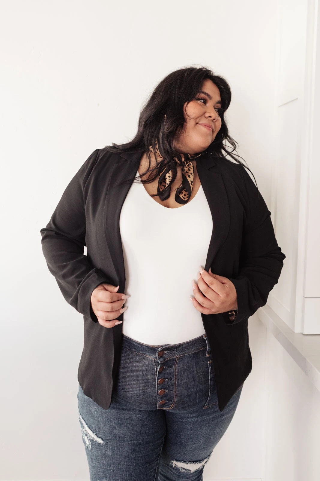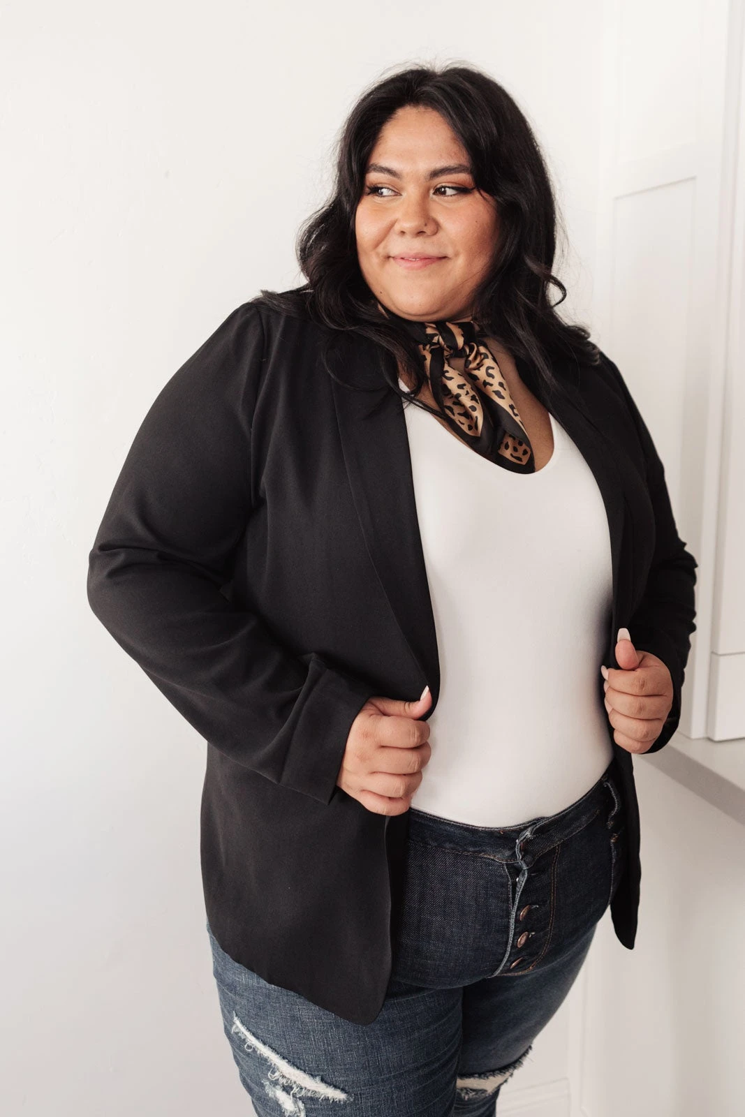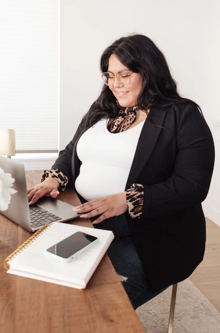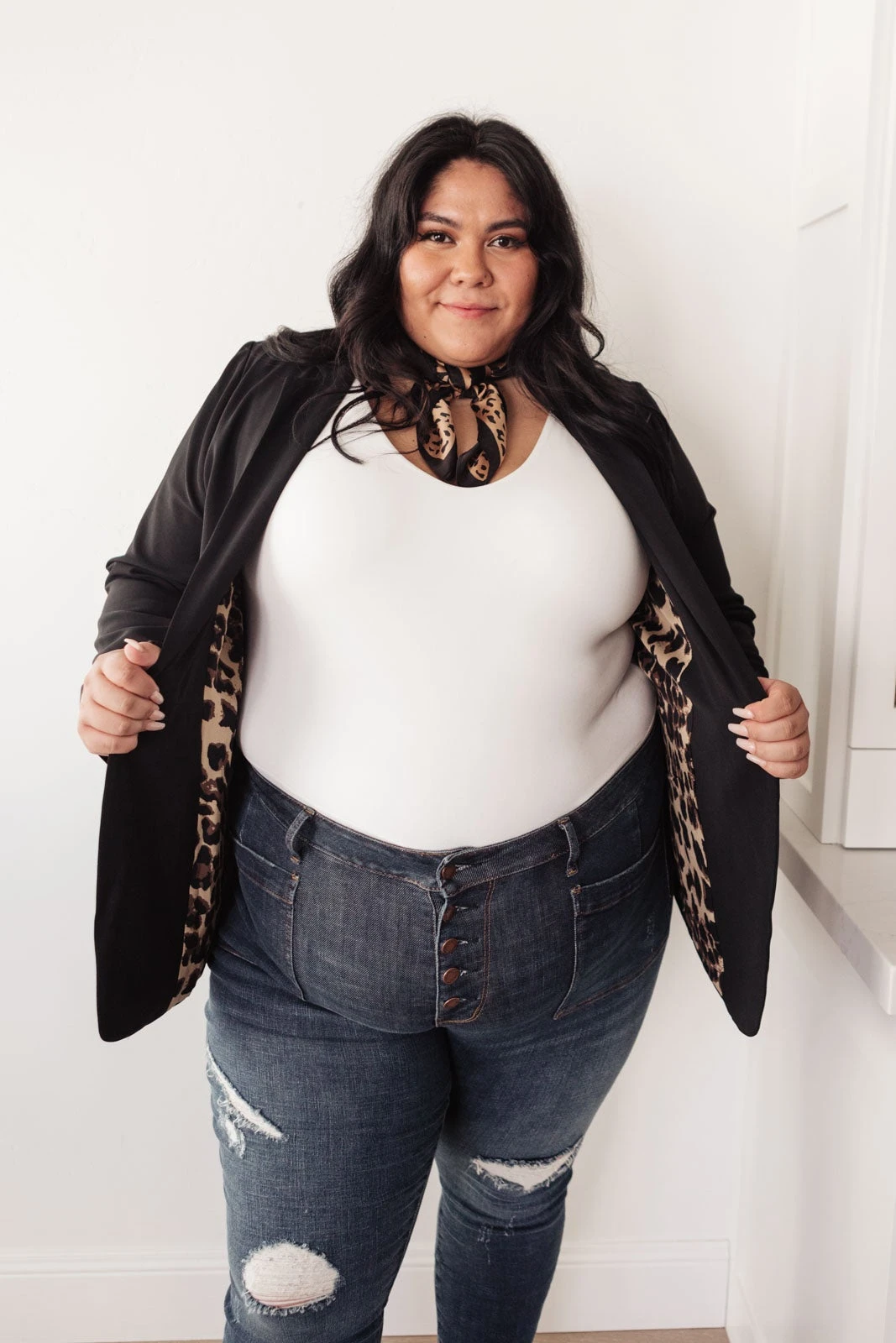 We are absolutely loving adding blazers to everyday wear. Chic will be your new middle name when you show up in this blazer. It has a fun pop of animal print lining the inside. Roll up the cuff for that peekaboo of sass, or you can keep the sleeves down for the classic black blazer style. This blazer features a lapel collar with notches and a kick pleat at the back, with two front flap faux pockets. Style with a tee and jeans for a casual business look, or dress it up with a mini dress and heels.