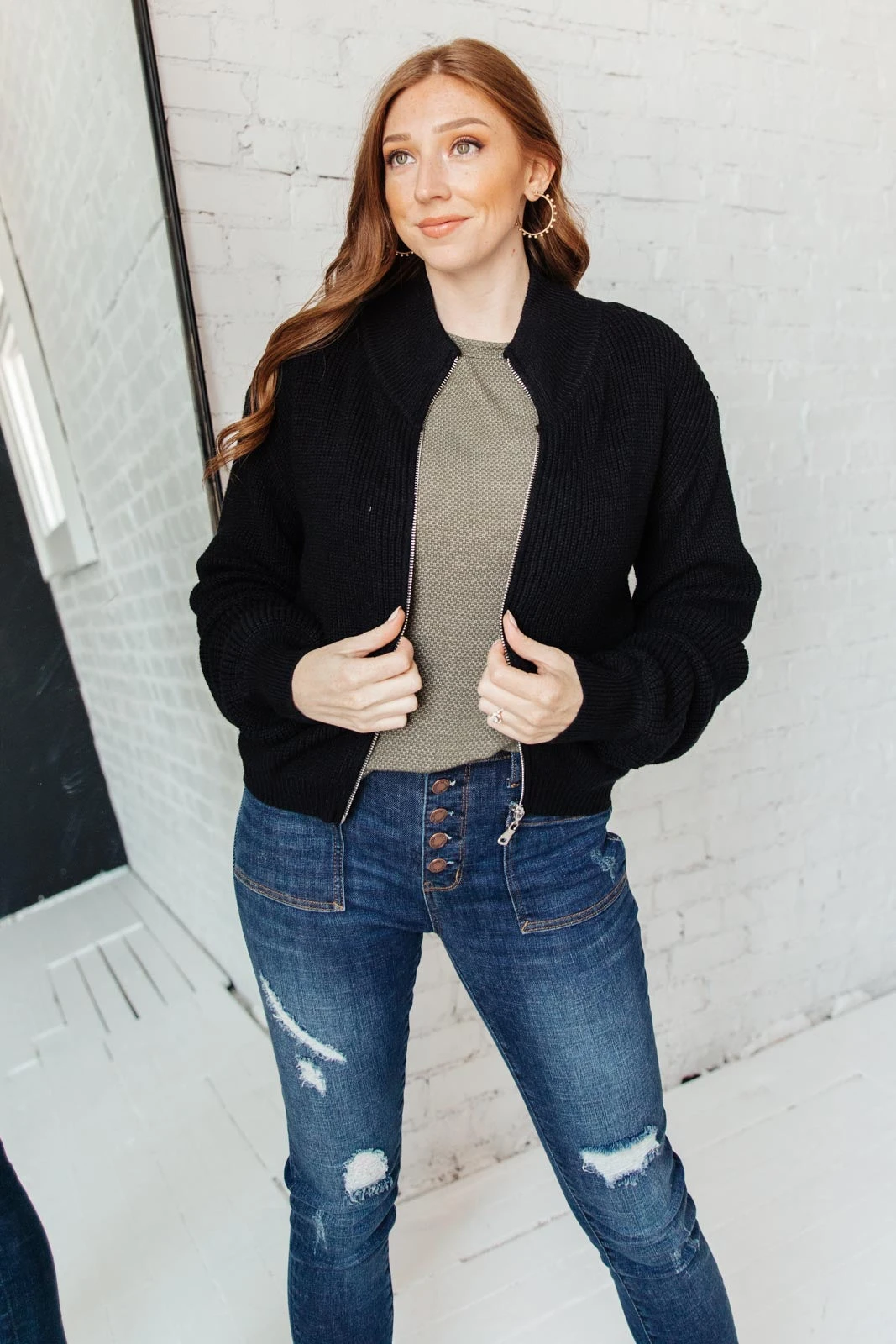 The Fireside Zip Up Jacket is a fun twist on a cropped sweater. You can wear this darling knit jacket zipped or unzipped for two different styles! The Fireside Zip Up is a soft sweater with balloon sleeves and a silver zipper that adds and extra element to this jacket! Pair it with jeans and boots for a cozy, but put together look.
