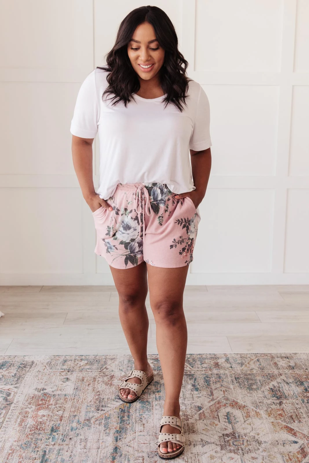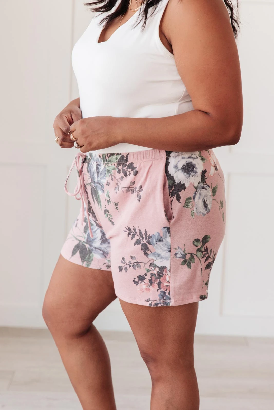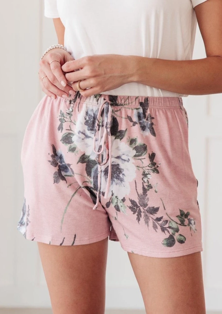 Floral and animal print details come together perfectly in the Floral Wild Side Lounge Bottoms In Mauve. The elastic waist and soft fabric make these the perfect lounge shorts. Pair them with the matching top, or your favorite classic white tee for a cute and casual outfit.