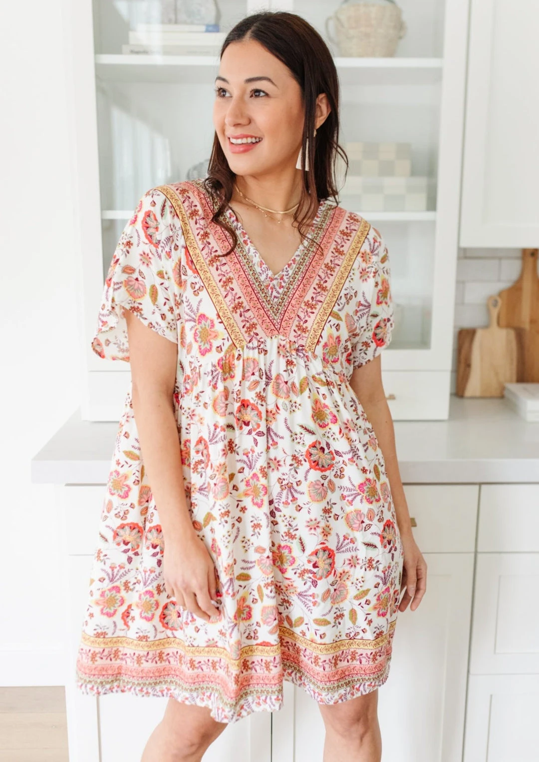 Keywords: Babydoll, Dress, Boho, Floral, V-Neck