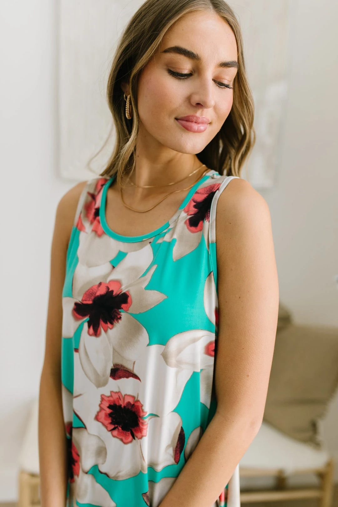 Keywords: Blue, Floral Dress, Sleeveless