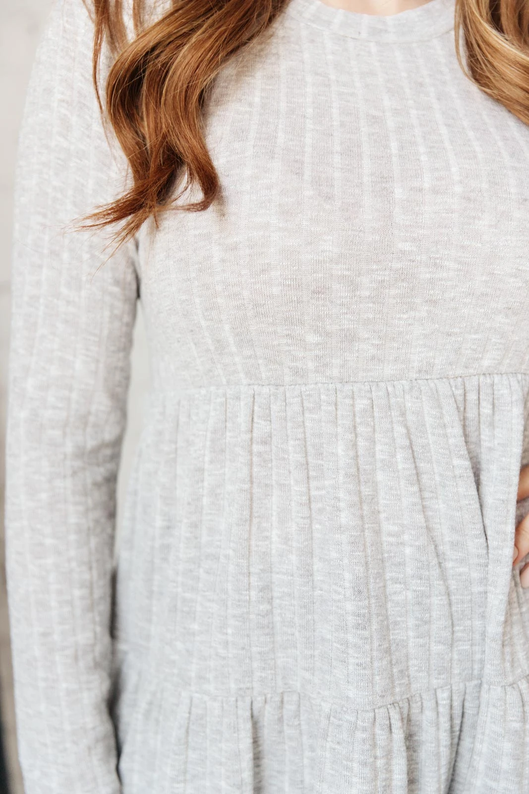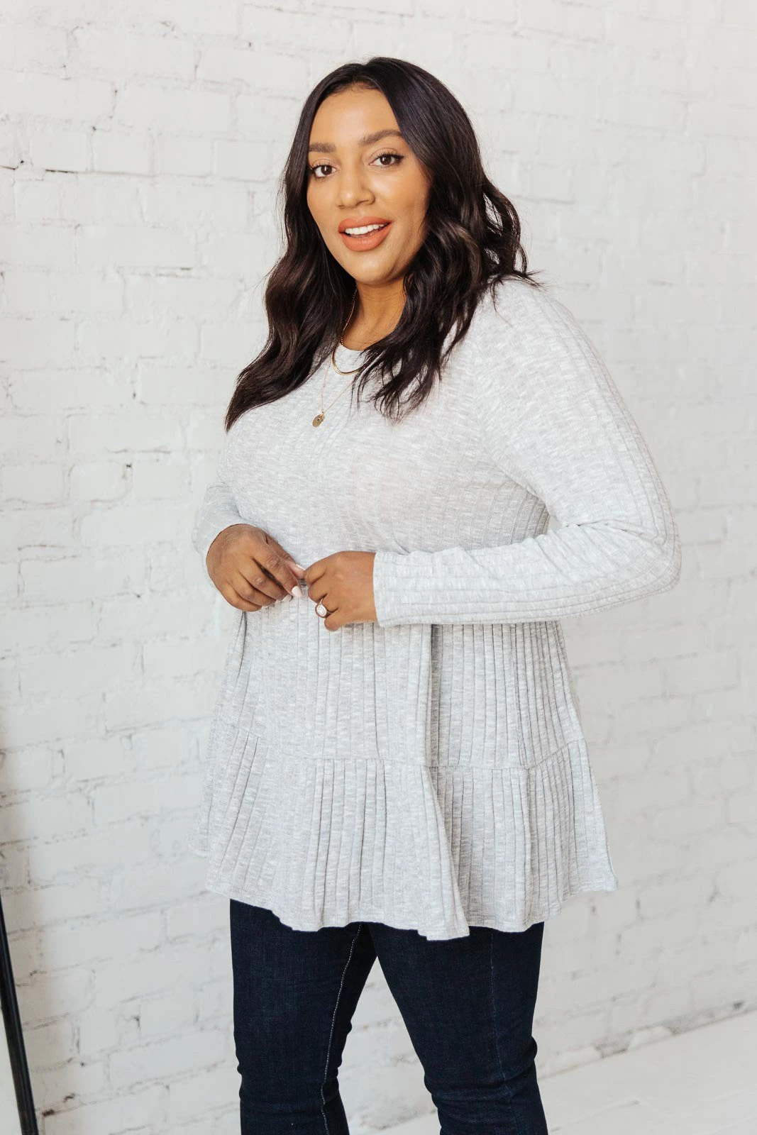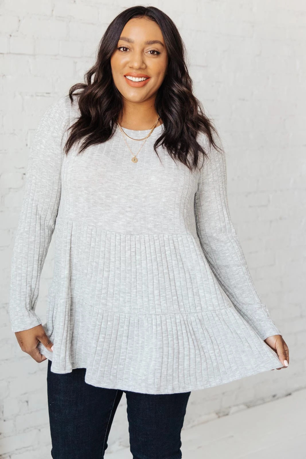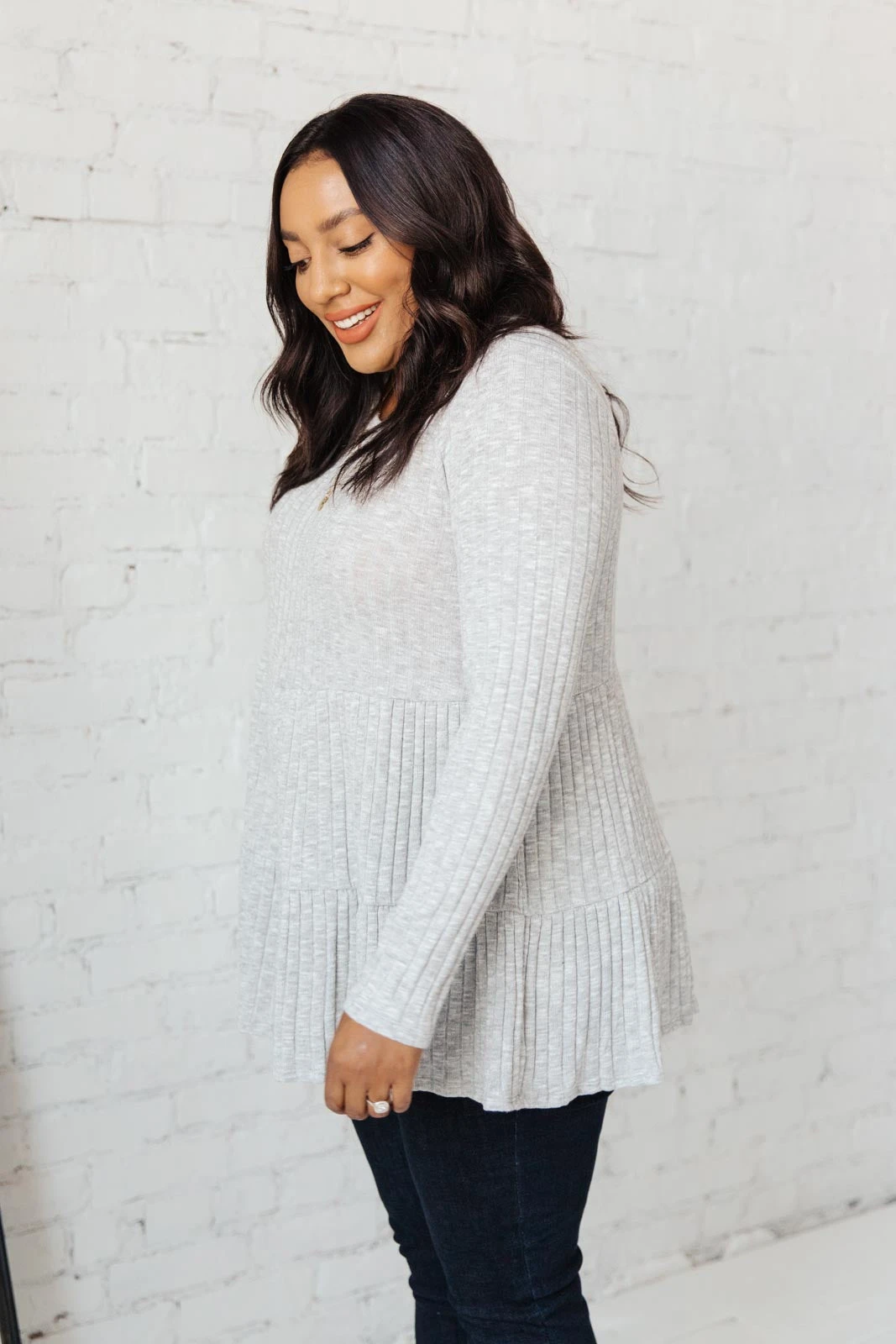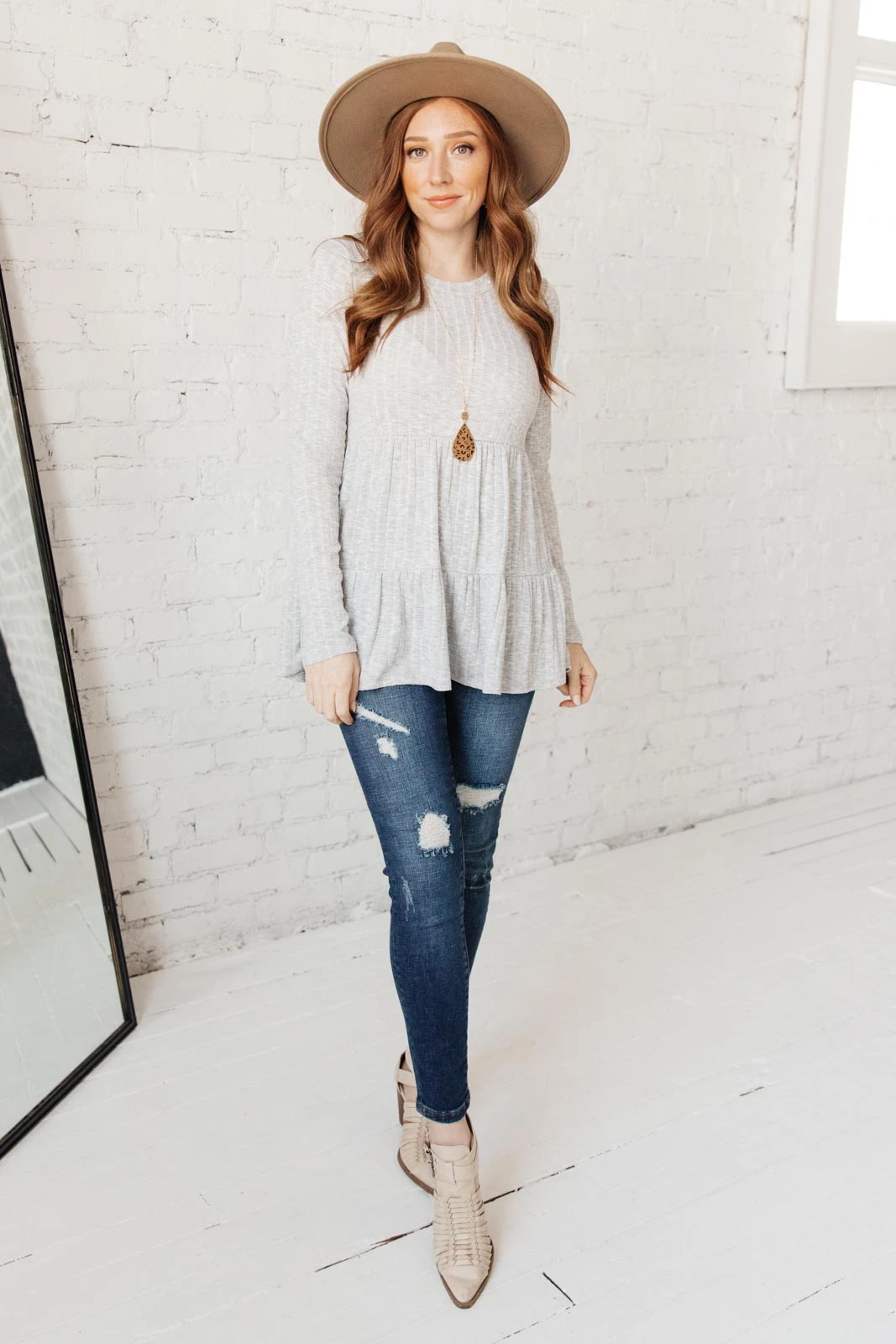 Keywords: Gray Top, Long Sleeve Top, Tiered Top, Gray Sweater, Fall