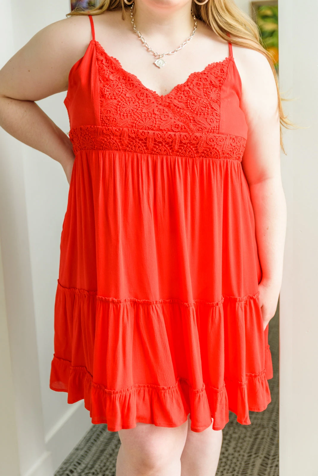 Get ready to look dreamier than ever in the Got The Glow Dress In Red! We aren’t going to ever stop obsessing over the details like the crochet overlay, tiered mini skirt with ruffles, and flowy silhouette! Pair this adorable dress with white heels and dainty gold jewelry for a chic and bright summer look!