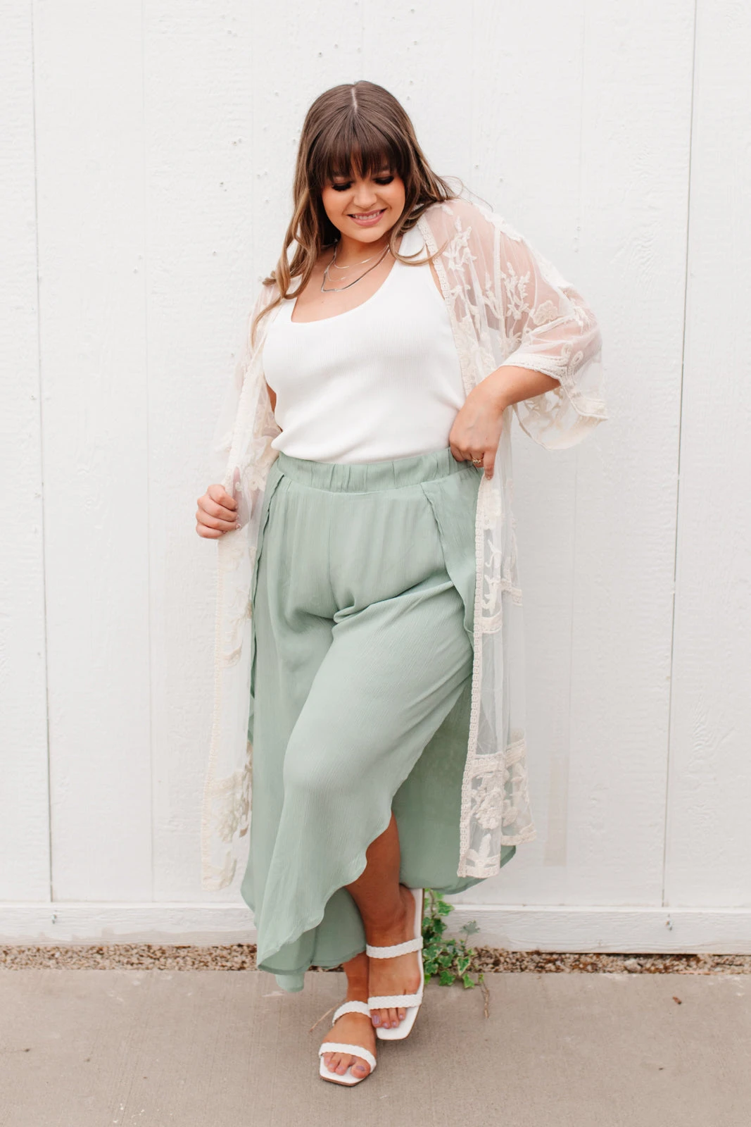 A beach vacay is calling your name, add a little flare to your suitcase with the Spring Dream Pants. Lightweight, woven fabric shapes these flowy pants. Featuring a wide cut, and slits that run all the way up the side and cross over for coverage. We love this paired with your fav bikini or tank and sandals for a beachy, chic fit!