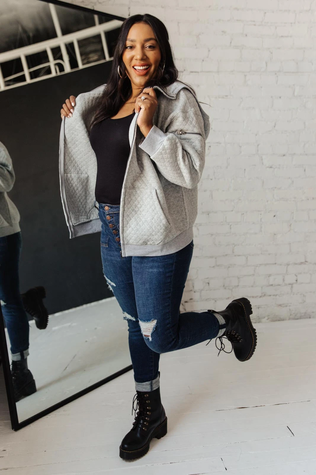 - Stay cozy and fashionable with the Ave Shops Keep Me Cozy Quilted Jacket. This elegant gray cardigan combines comfort and style, making it a must-have for your outerwear collection.