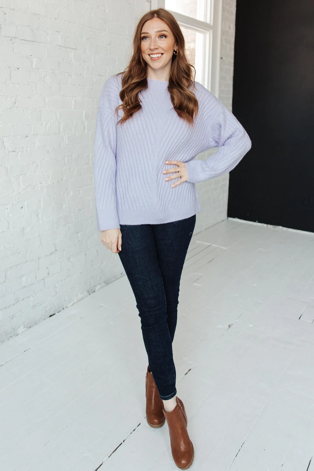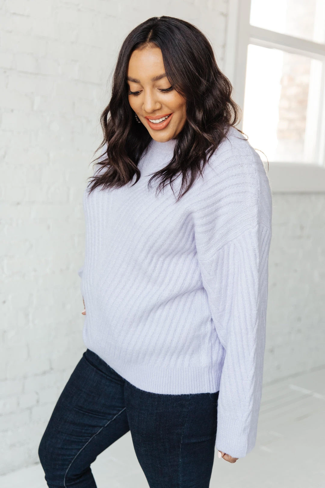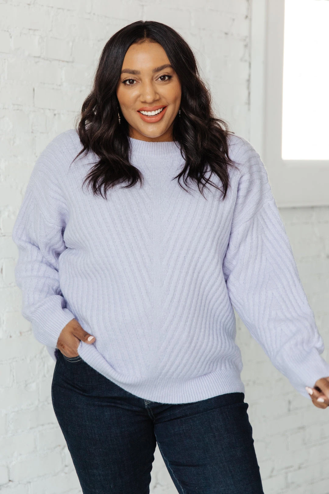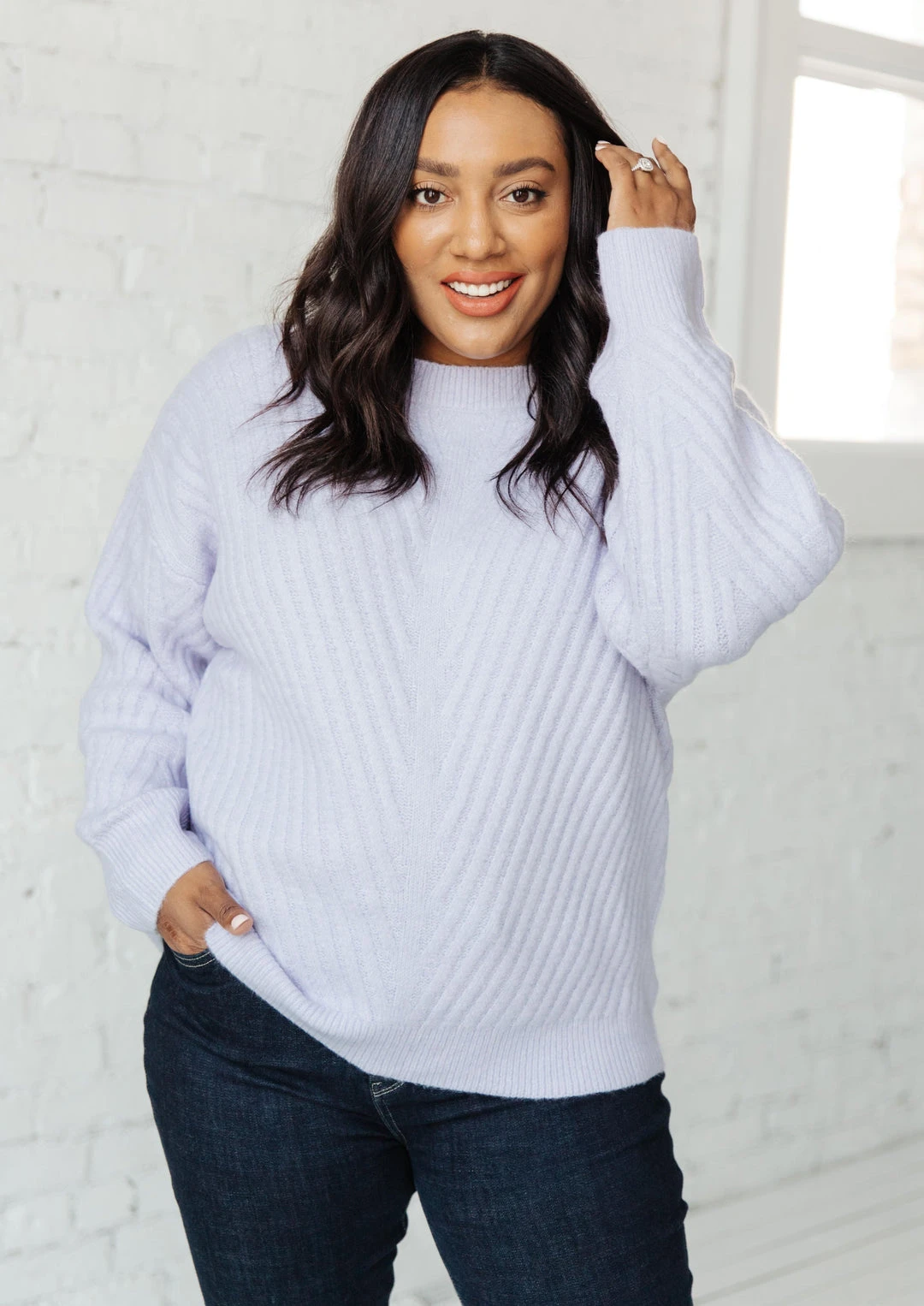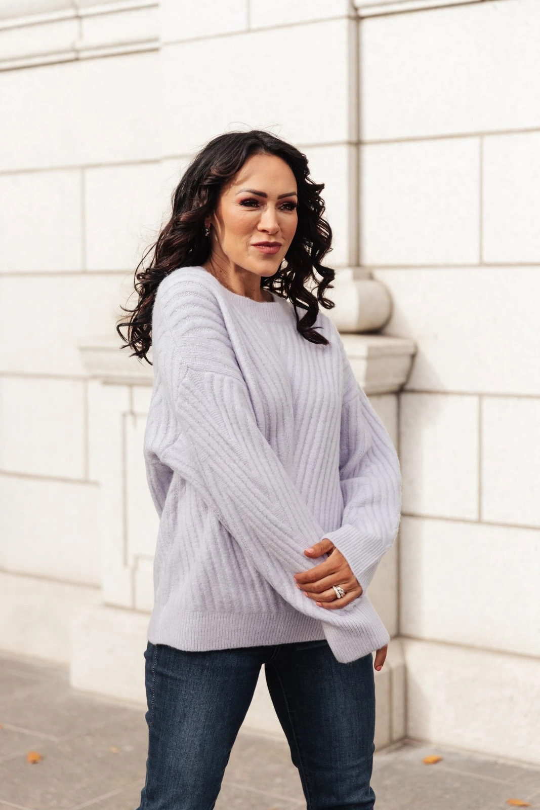 The La-La Lux Sweater in Lavender is simply stunning! This sweater is super soft, and has a beautiful striped pattern that adds a memorable detail. Pair it with jeans or trousers for a perfectly put together look.