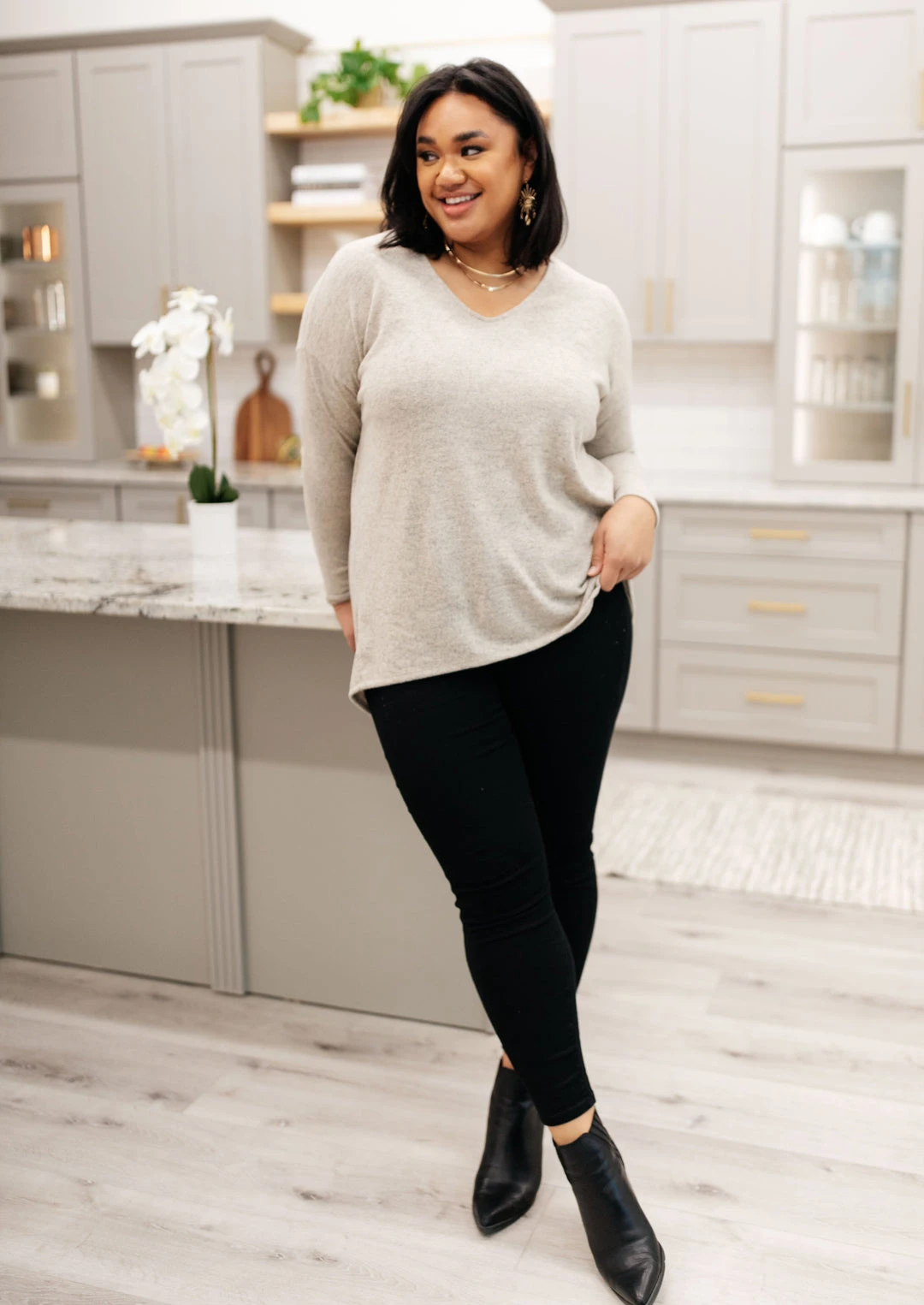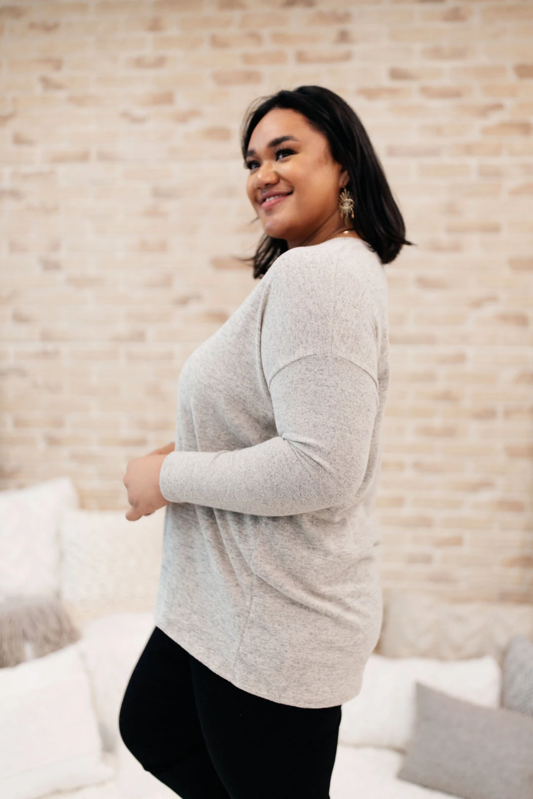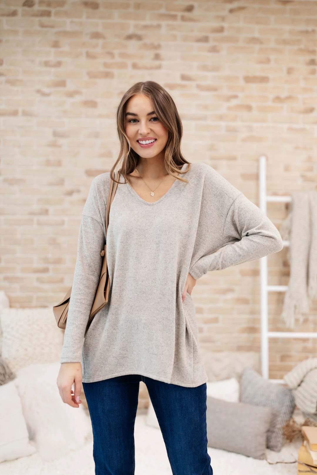 Keywords: Long Sleeve Top, Beige Top, Tan Top, Relaxed Top